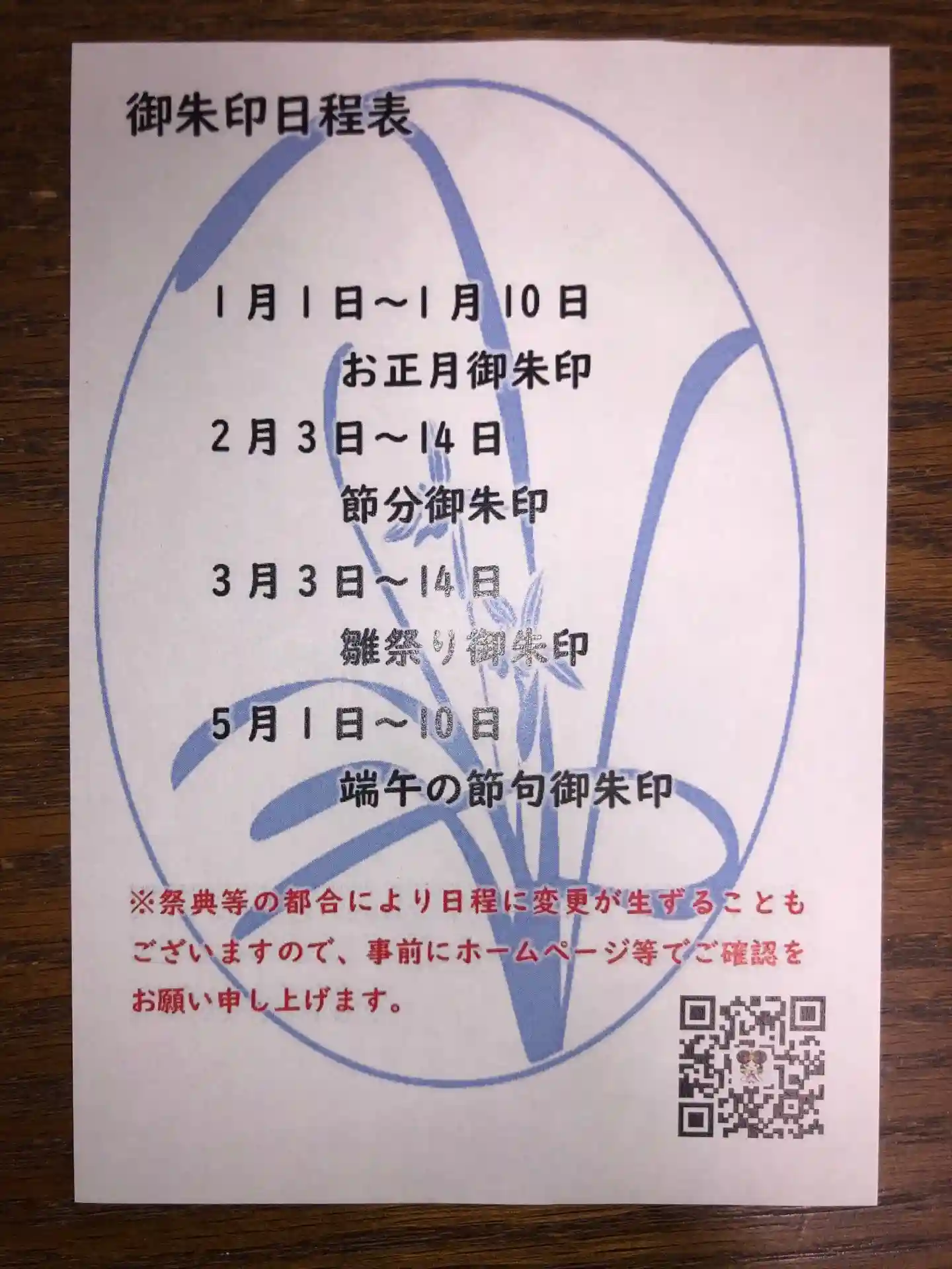 御朱印の予定が書いてあります。