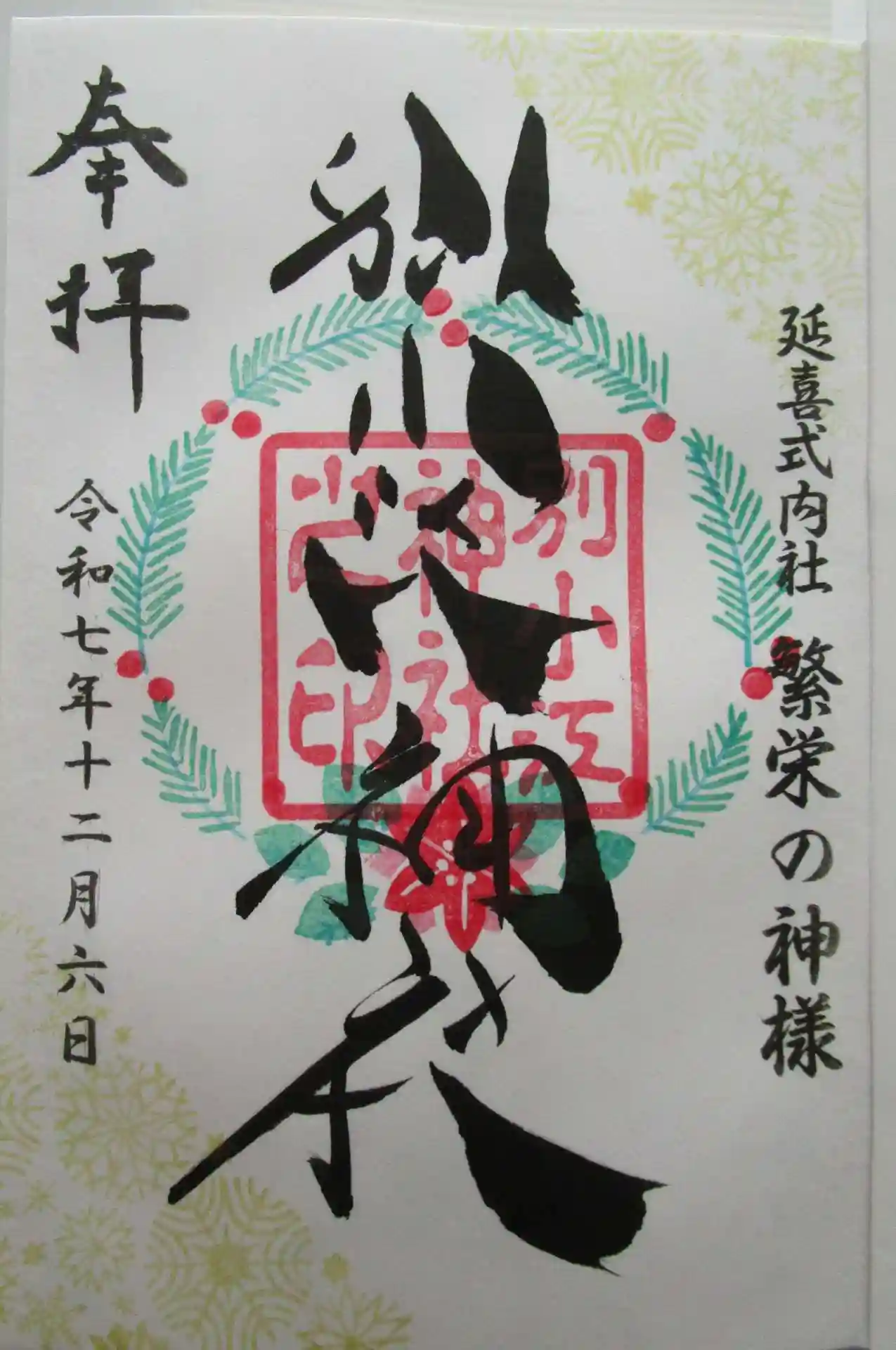 直書き(御朱印帳に書く)令和8年1月14日~