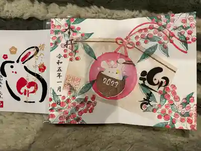 1月の通常 書き置き御朱印と 挟み紙です。 ご挨拶になってて干支ウサギちゃんかわいいですね😃
