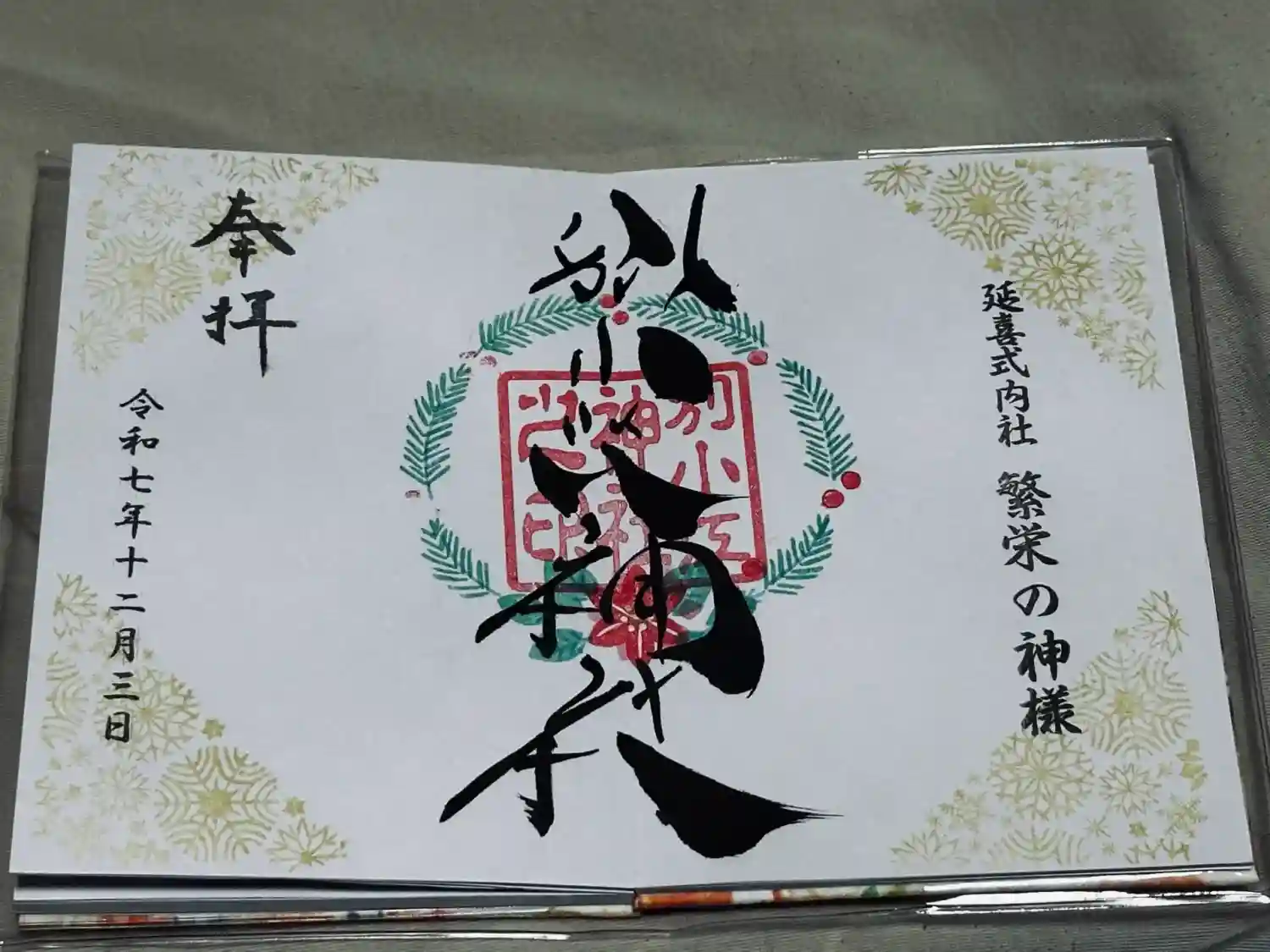 事前お預けです。御朱印帳必要です