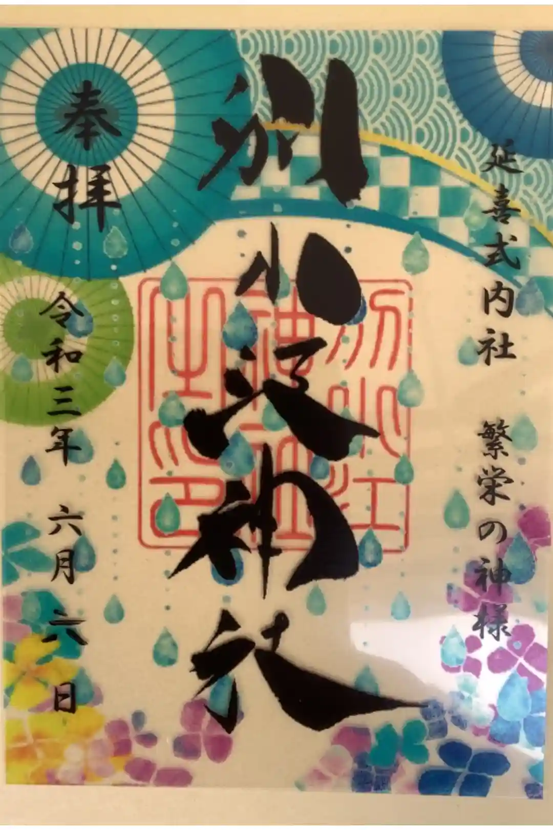 梅雨の時期らしい和傘と紫陽花の御朱印になっております。