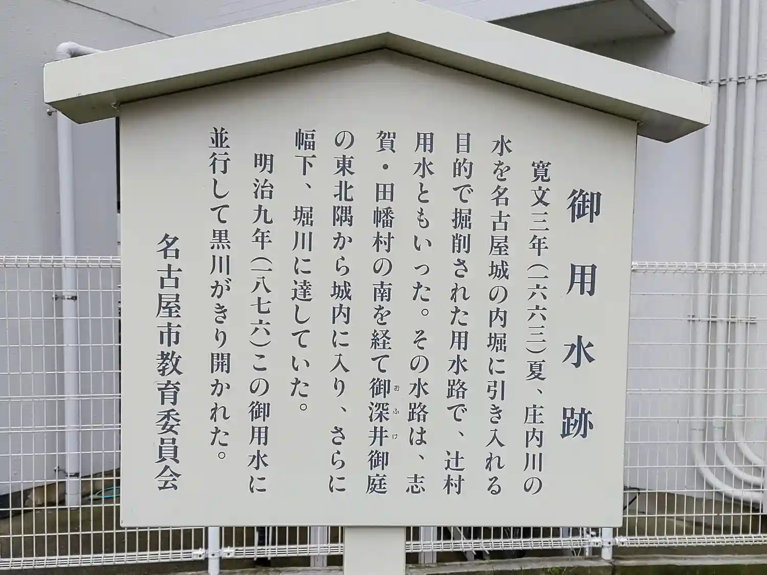 天命4年(1784) 水害から街を守る為、大幸川の流路を変えて堀川につなげられました。そこから約100年後の 明治10年(1877) 犬山と名古屋をつなぐ川をつくって船で人や荷物を運んだり、 農業用の水として利用するための大規模な工事が行われました。 この工事で、 新しく作られた川と堀川がつなげられて、現在のような形になりました。 名古屋城より上流の堀川は、工事を担当した技師の黒川治愿の名前にちなんで、今も「黒川」と呼ばれています。