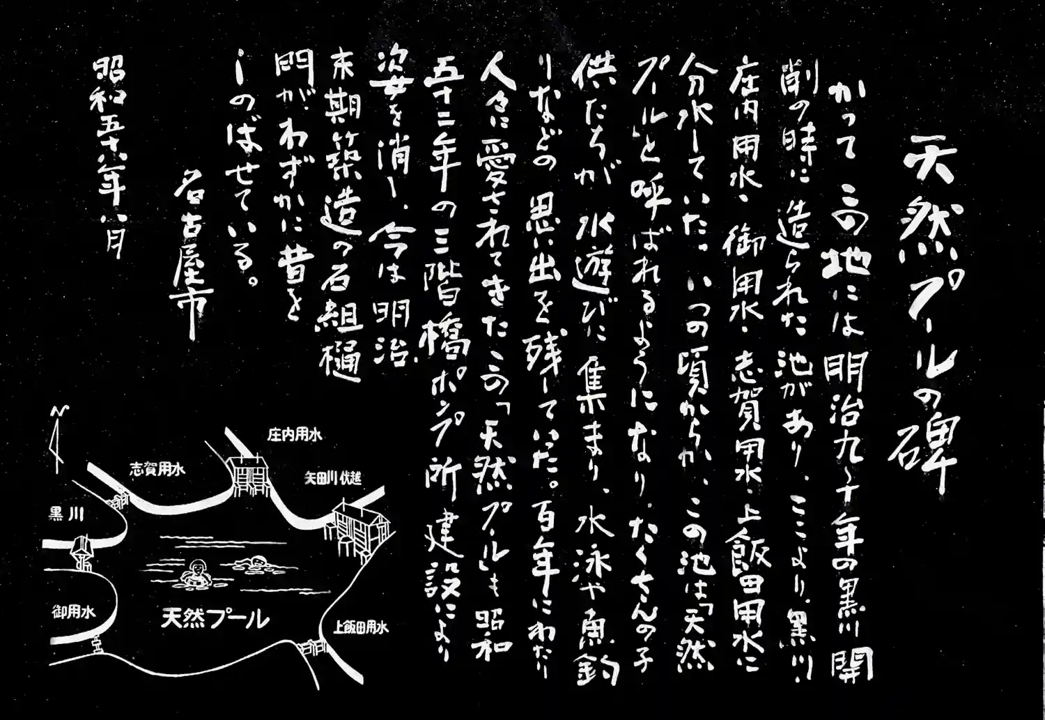 黒川樋門 庄内川から黒川(堀川)へ用水を引くために設けた樋門(ひもん)であり、矢田川の地下を通り、ここから黒川へ流れ込みます。