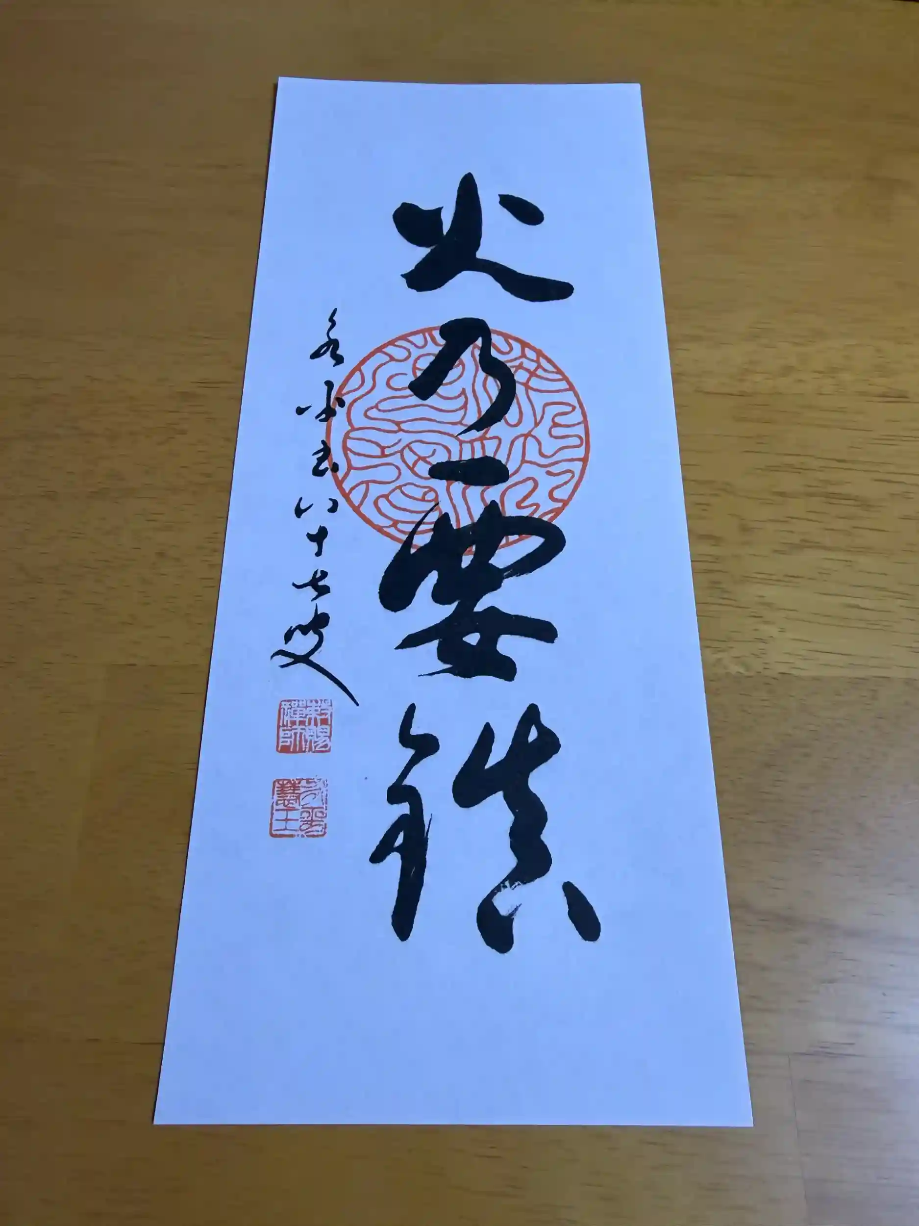 この日は御朱印帳を持参するのを忘れてしまい、書き置きをいただきました。その際、火乃要慎(火の用心)のお札もくださいました。