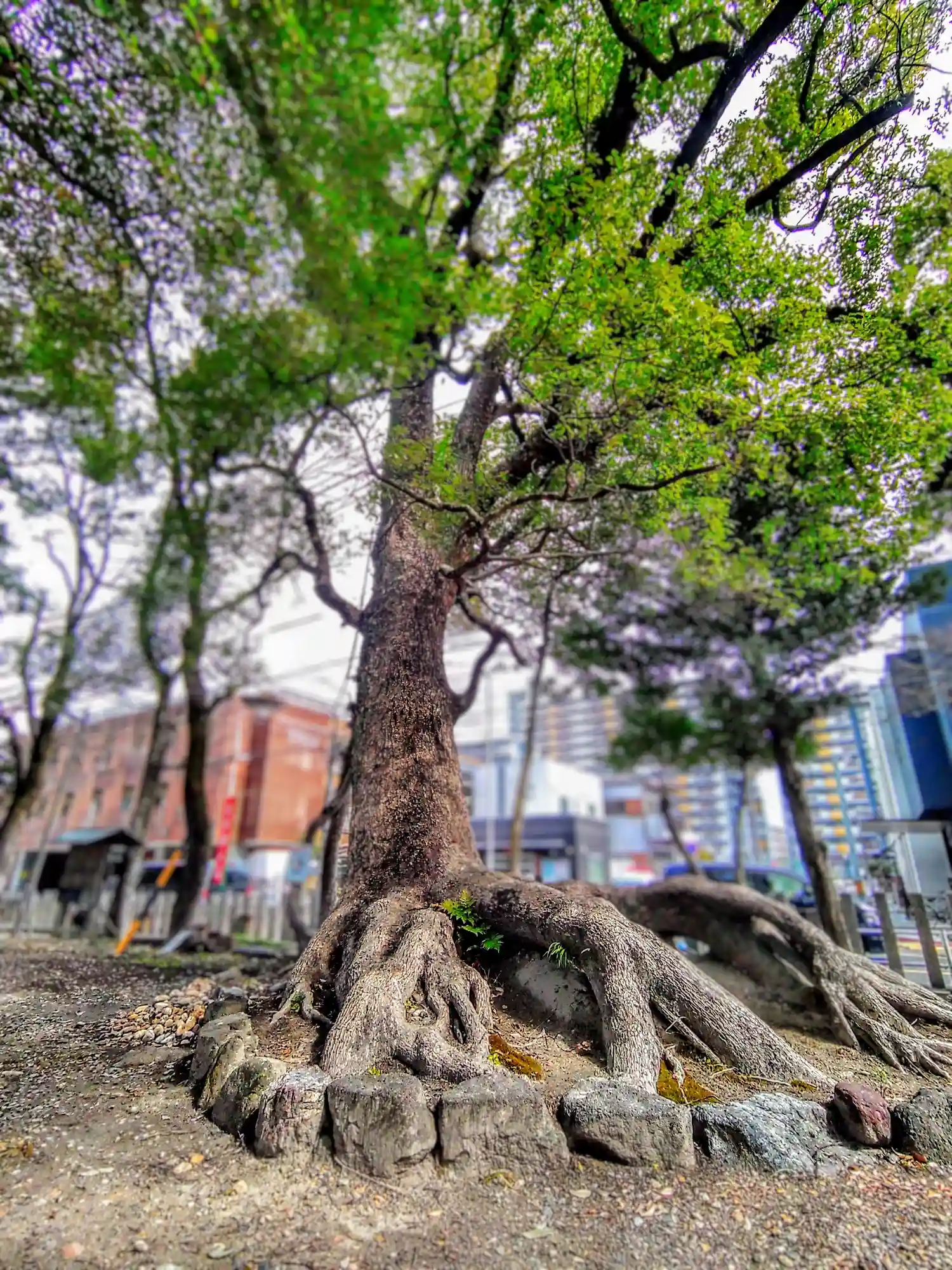 根上がり状態の木が不気味であり迫力がある。