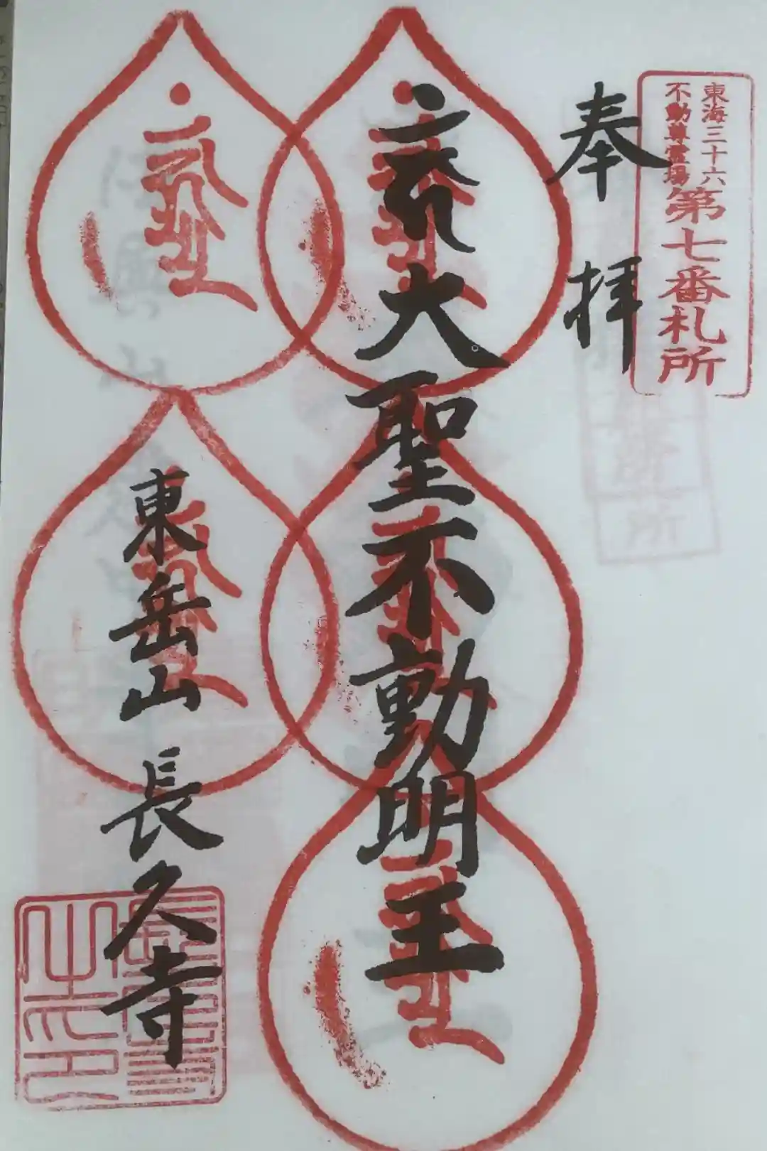 東海36不動尊の奉納帳への押印、こちらは重ねていないけど重ね印で6度目