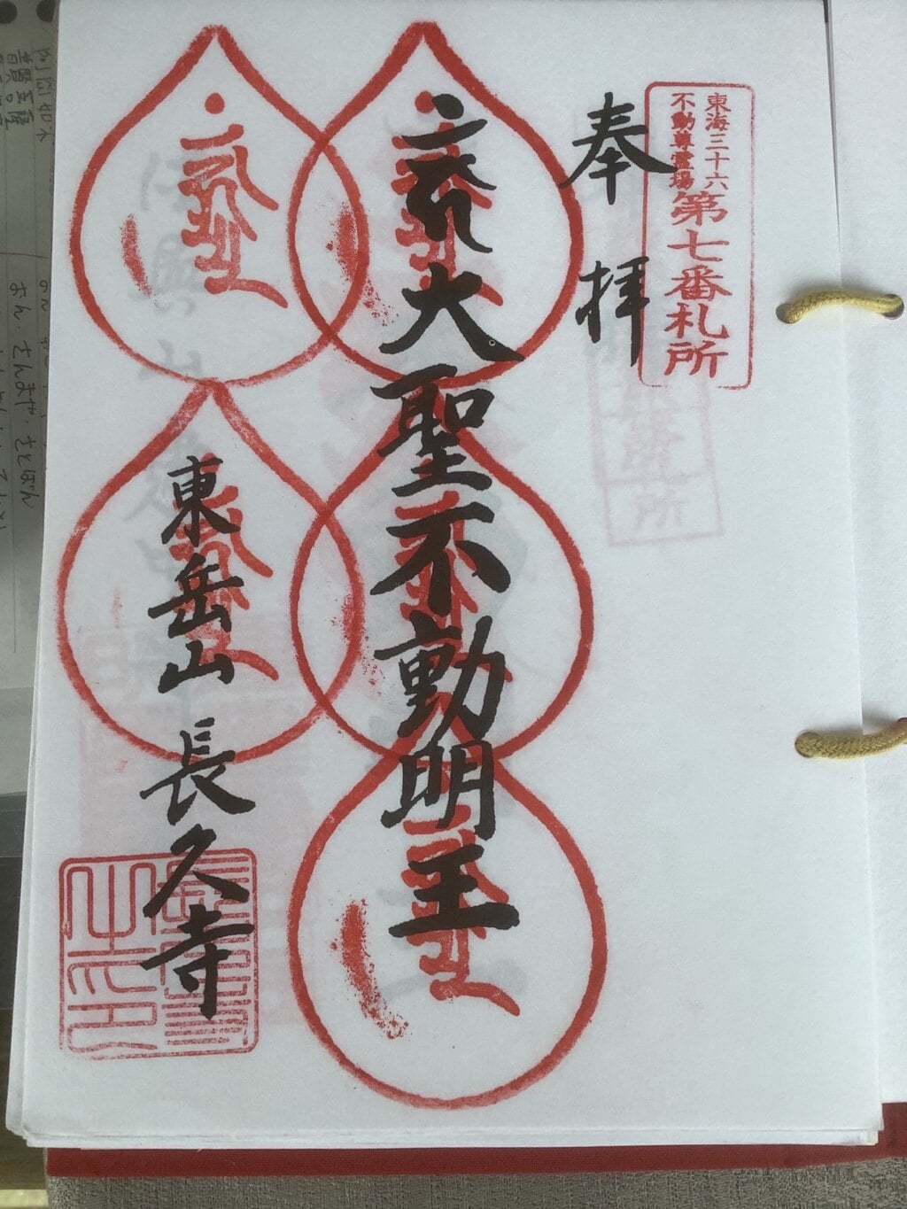 東海36不動尊の奉納帳への押印、こちらは重ねていないけど重ね印で6度目