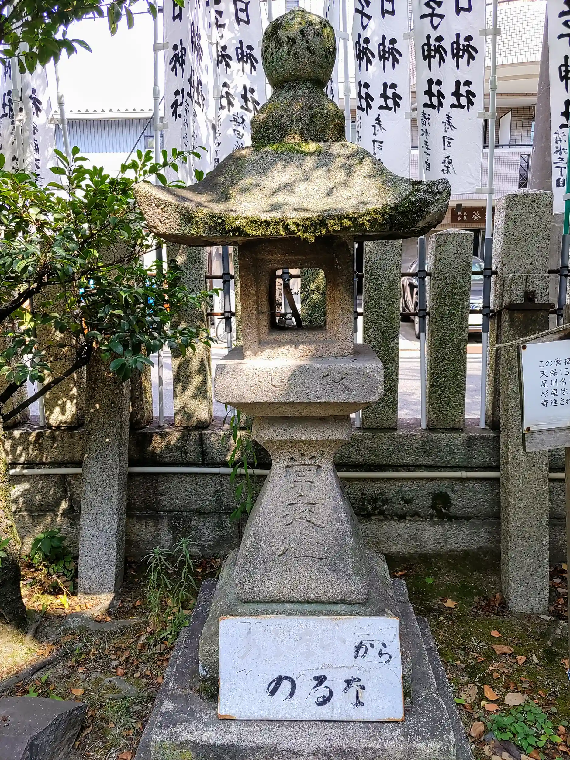 この常夜灯は天保13年(1842) 尾州名古屋の豪商杉屋佐助によって寄進されたものであるそうな。