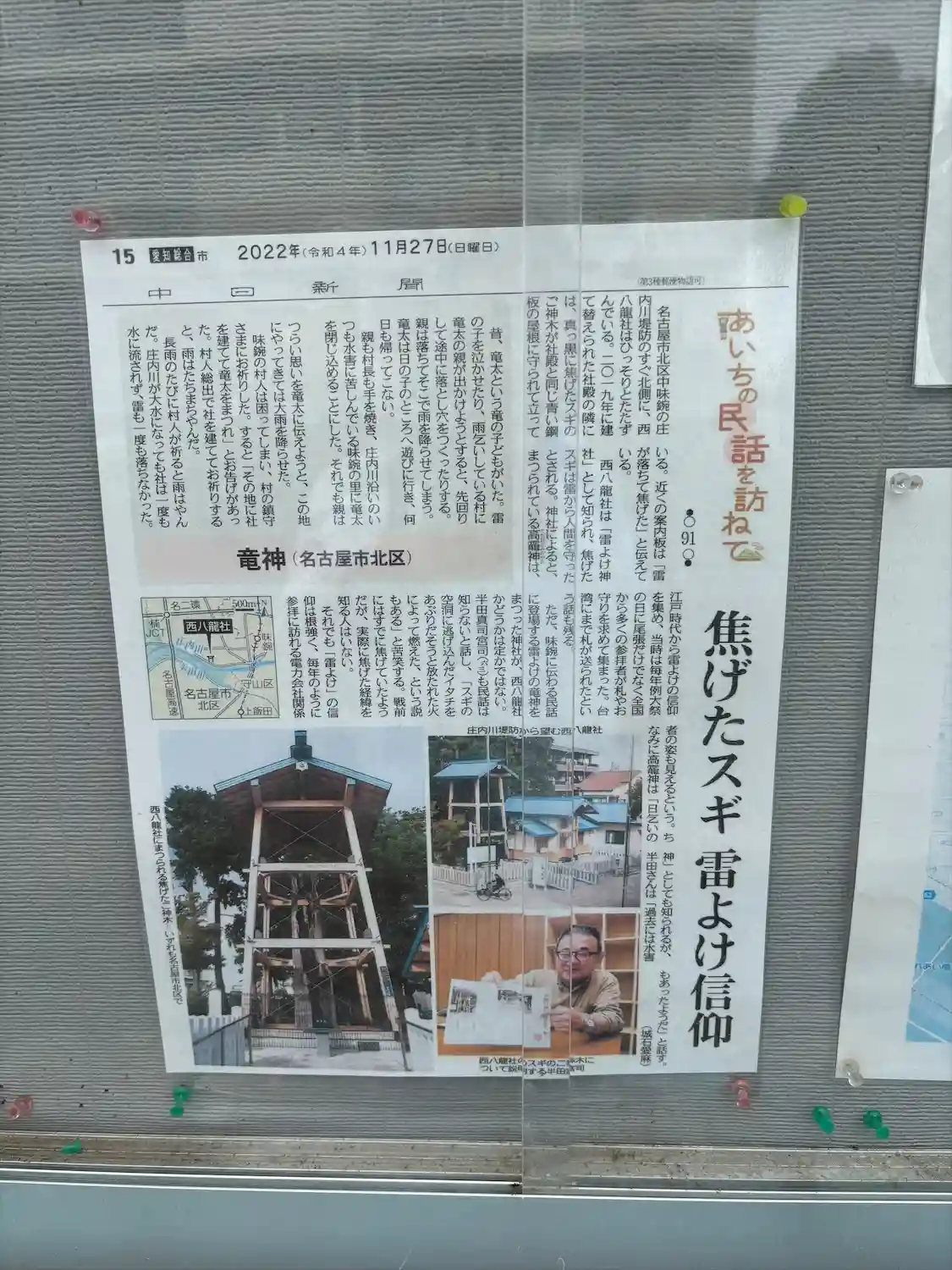 非常に珍しい、雷避け神社。雷が落ちた木が御神木。