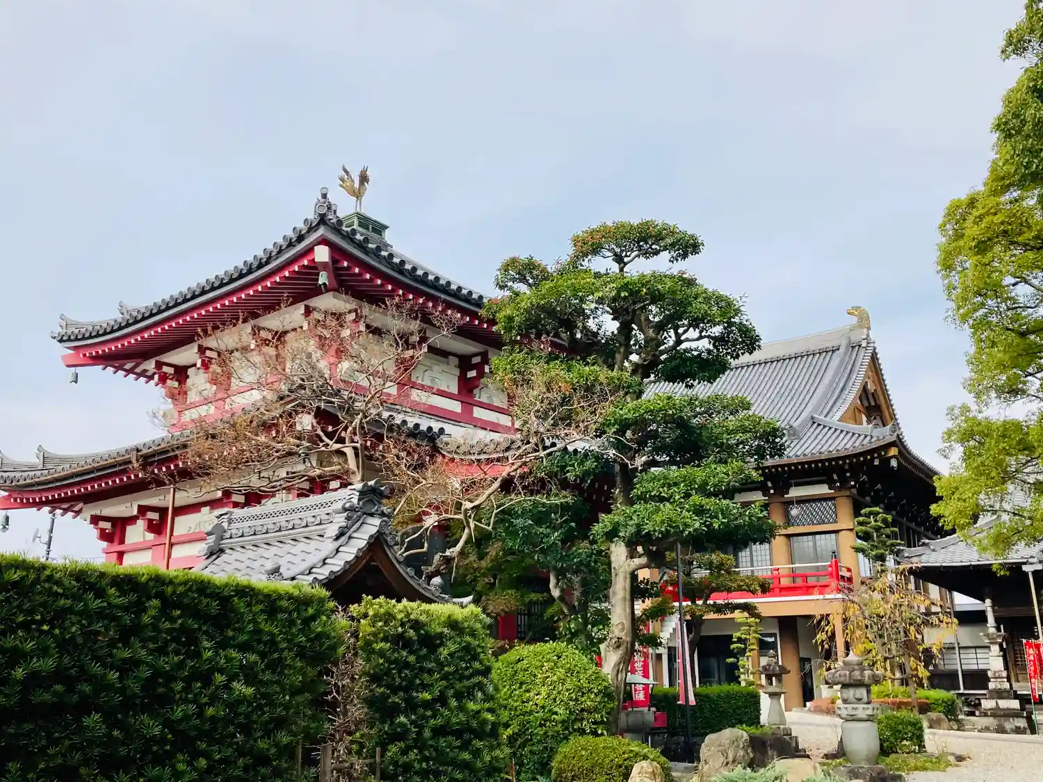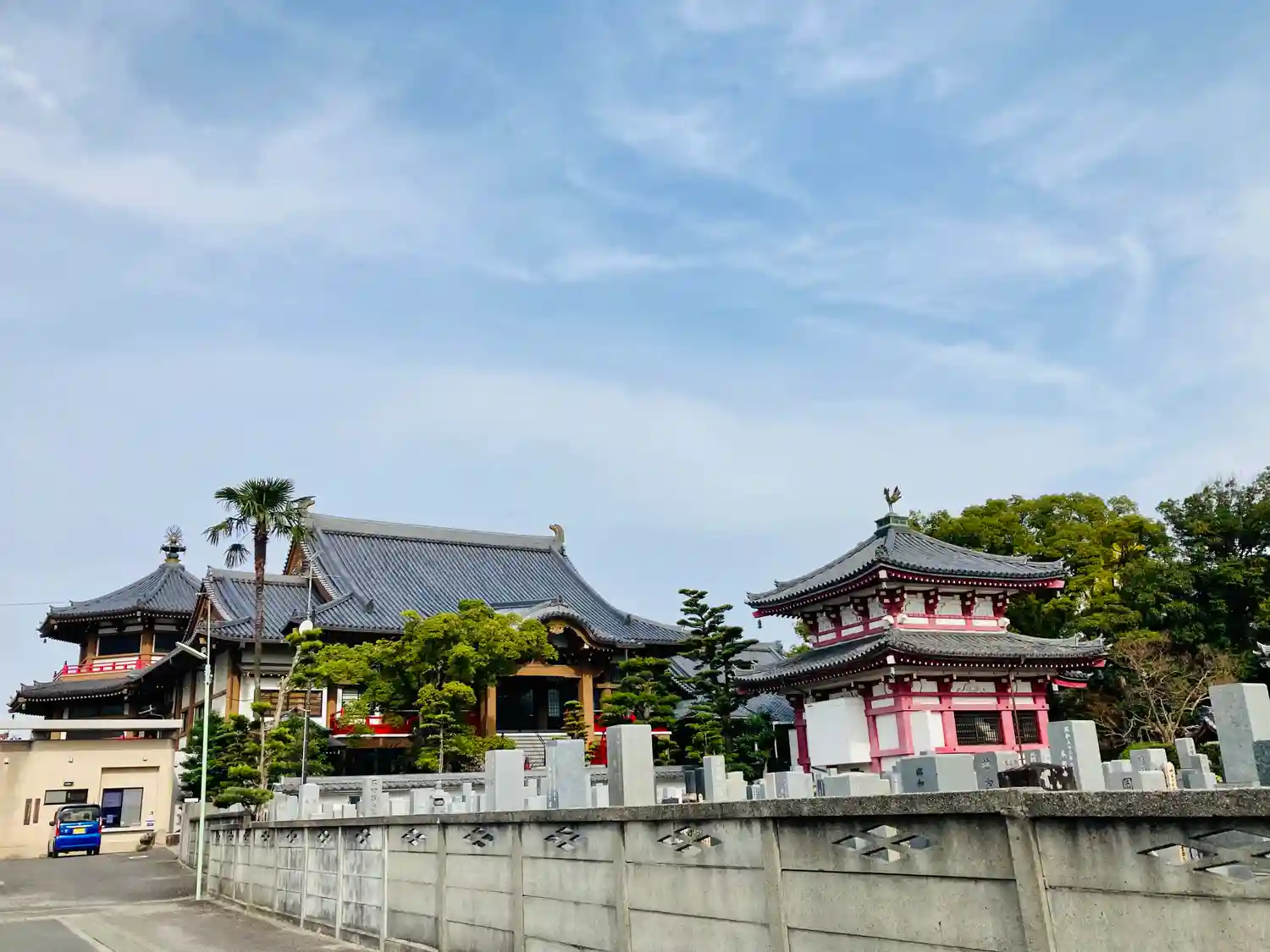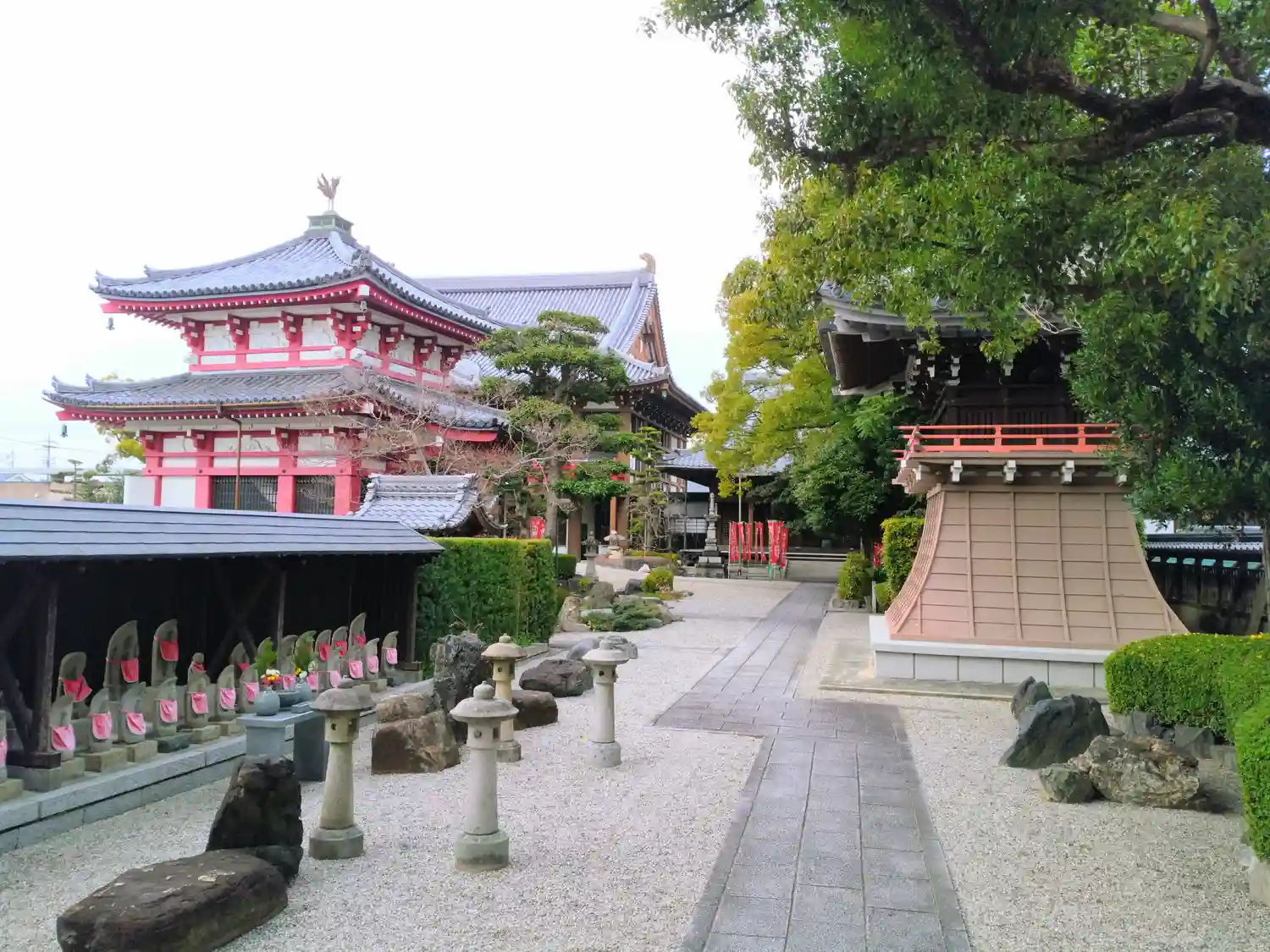 名古屋駅から電車とバスと乗り継ぎで50分ほどで、閑静な住宅地の中に建立されていました。