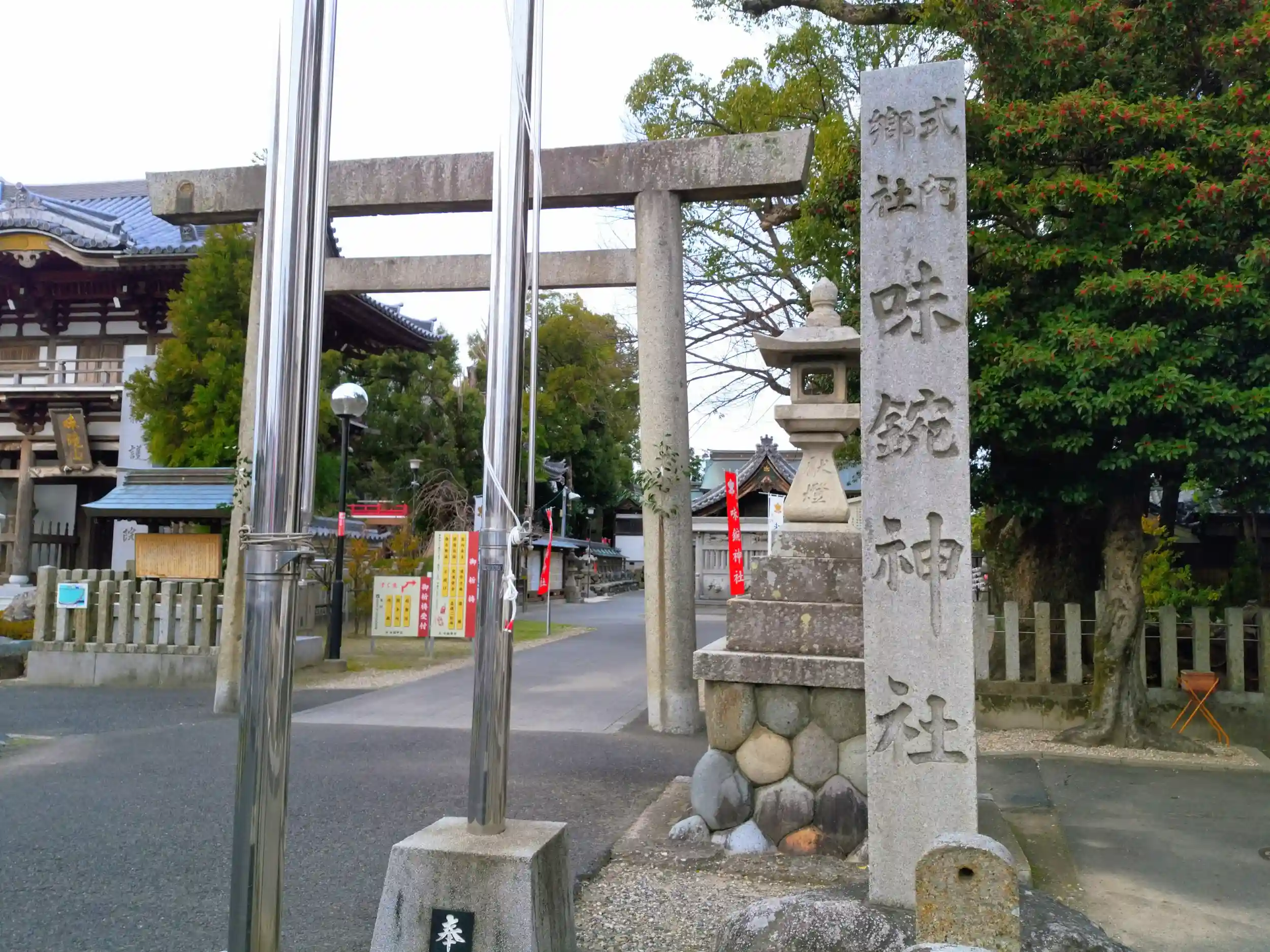 お正月の準備は万端である。左手は護国院。