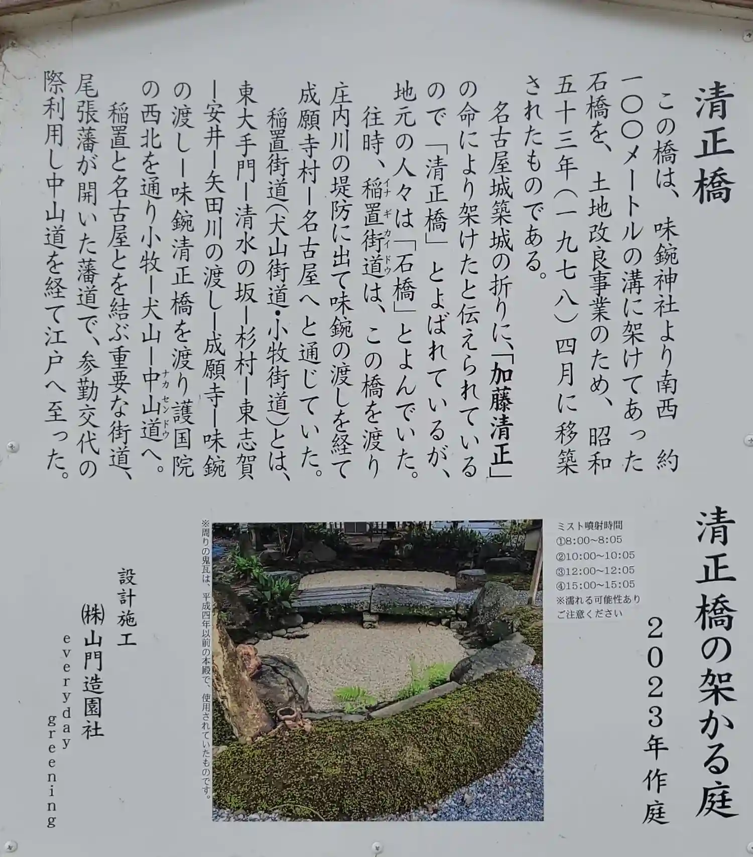 加藤清正公の命により架けられたと伝わる清政橋。移築されたものです。