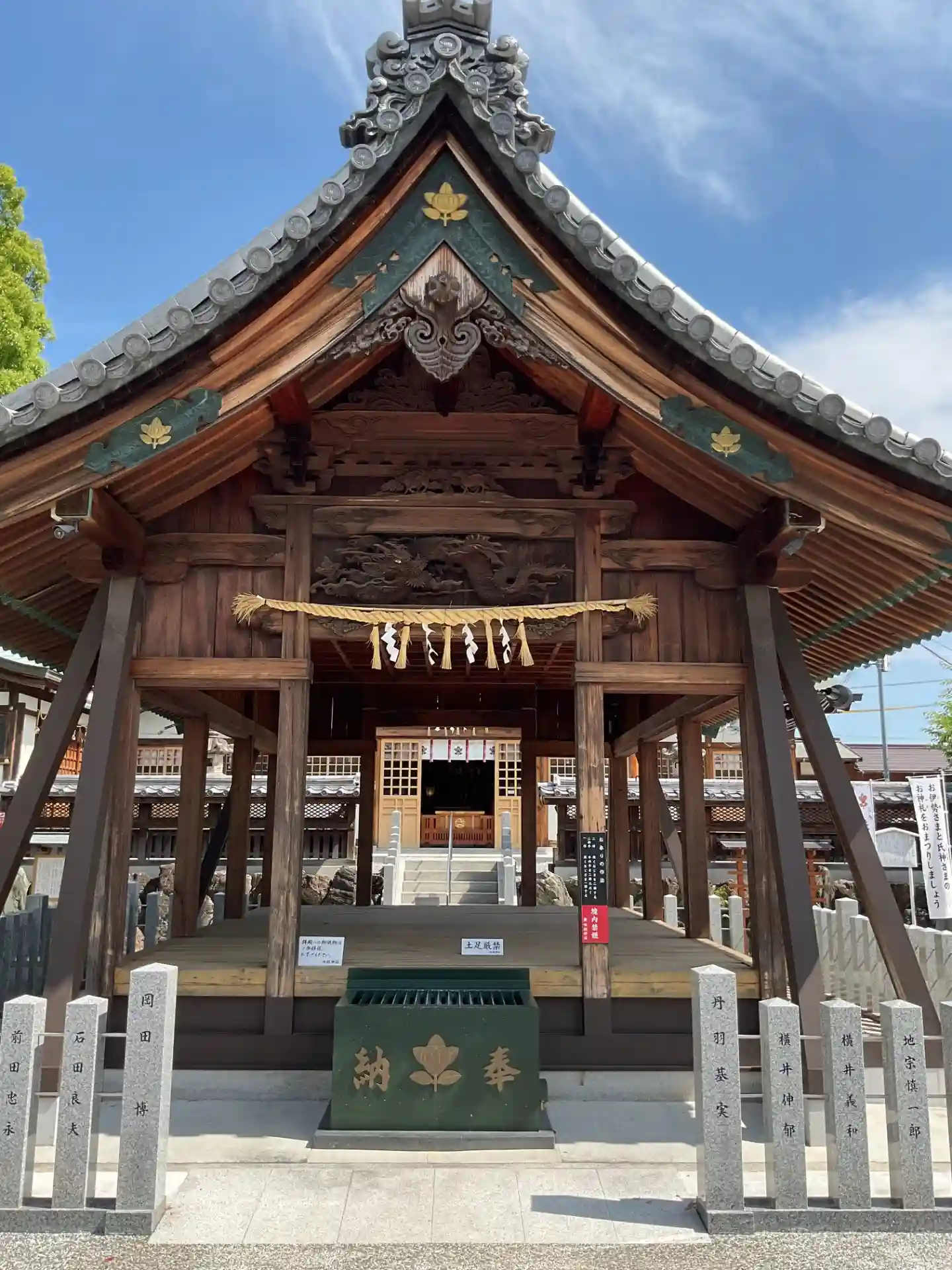 今回は拝殿と本殿が独立していますが、やはり尾張造を意識してか妻入りの面が正面となっています。