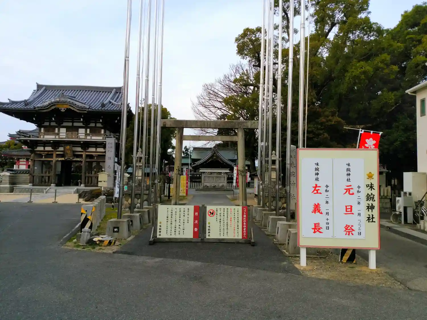 お正月の準備は万端である。左手は護国院。