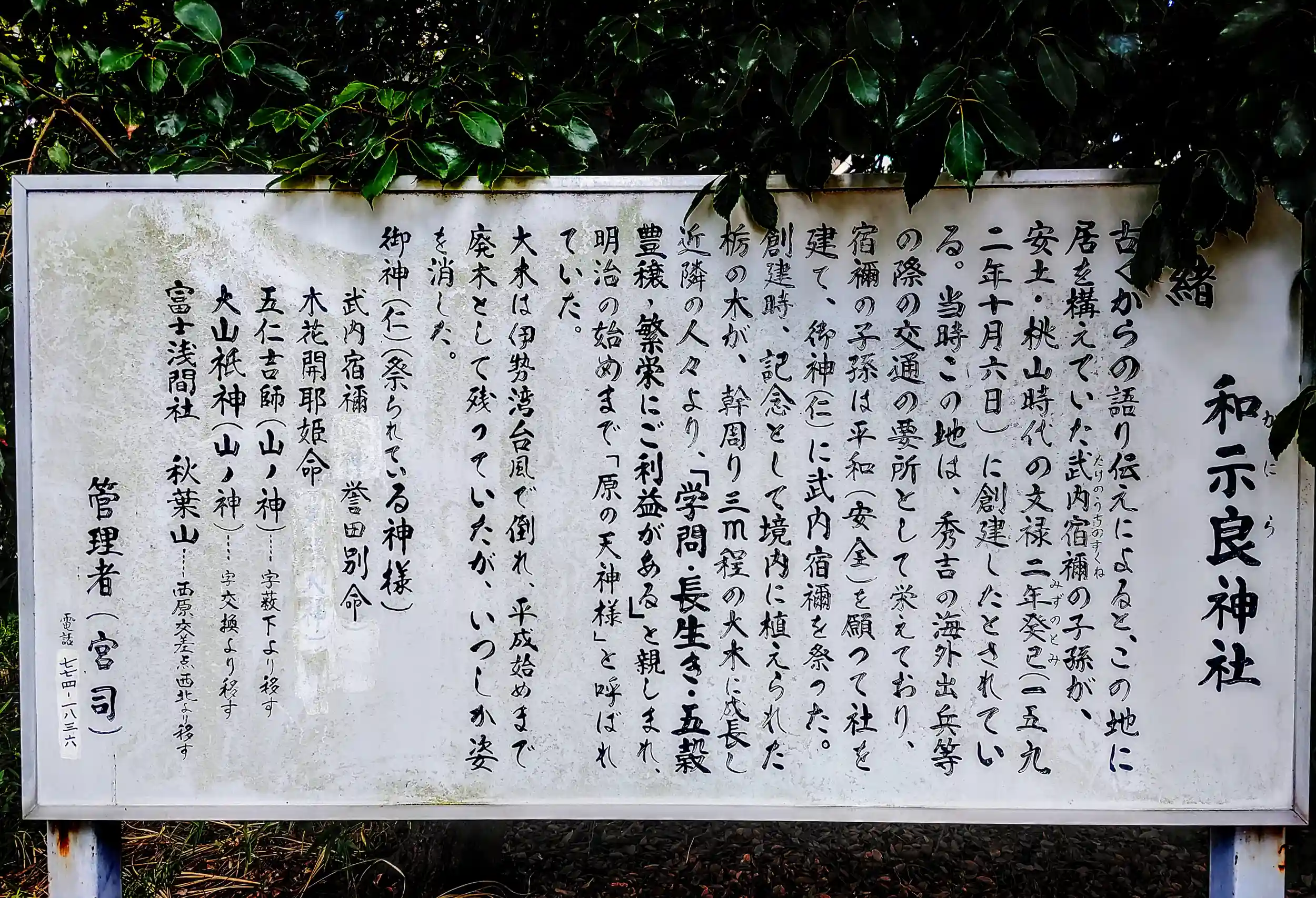 何かよく分からない神社。「和爾良」なのか「和示良」なのか、読み方も「ワニラ」なのか「カニラ」なのか。分からない。