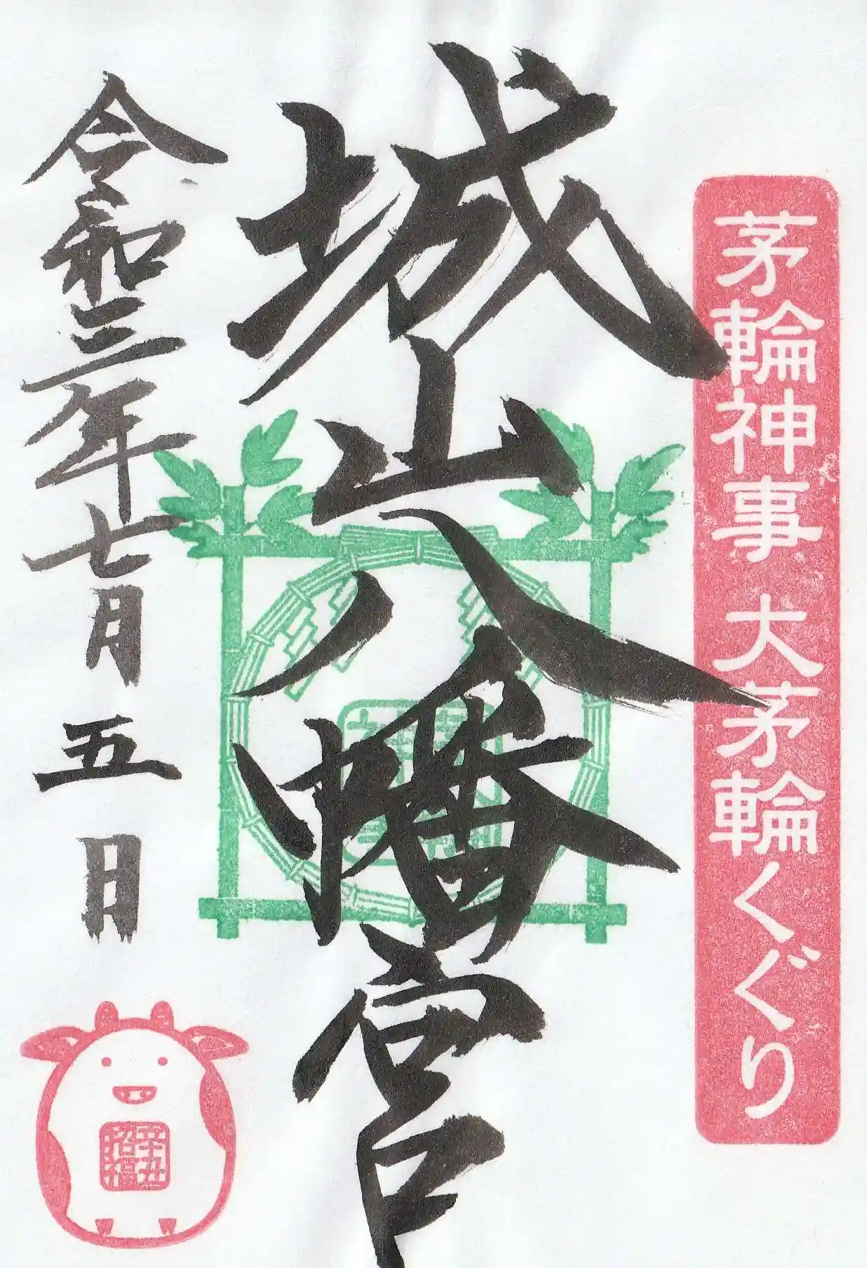 城山八幡宮より、御朱印を郵送授与いたしました。