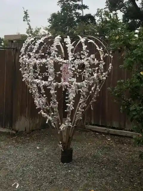 おみくじを縛るところがハート型になってました。