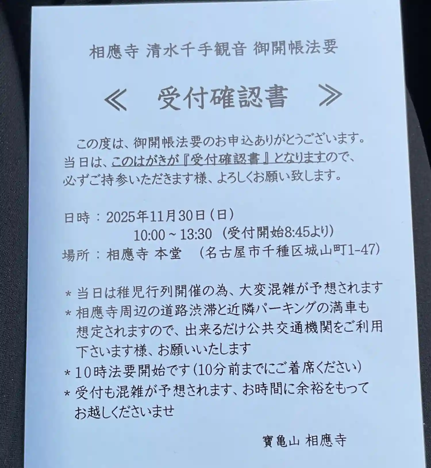 最初は、名古屋市千種区に在る宝亀山 相応寺です。