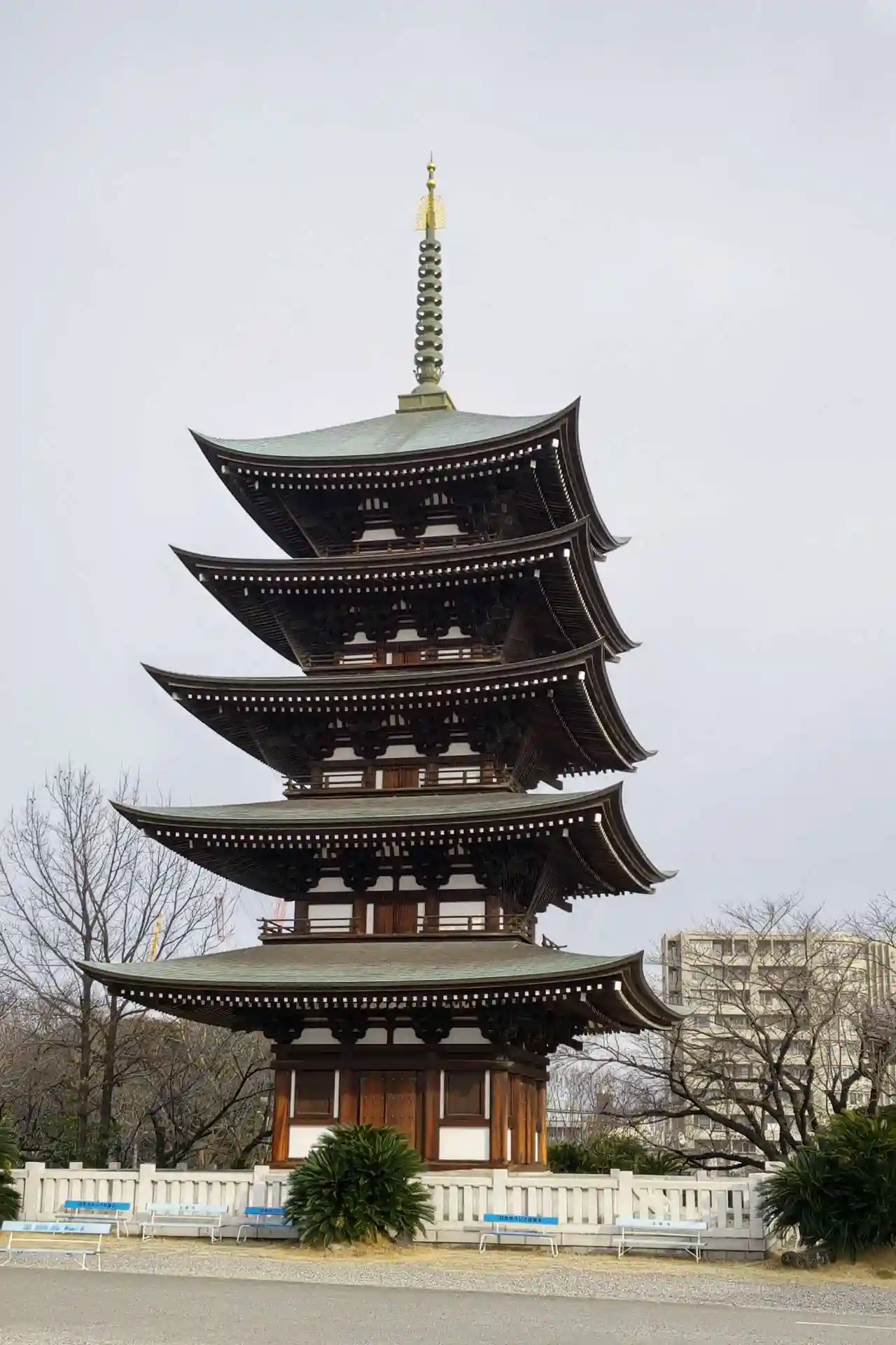 そして五重塔。平成9年建立です。すっきりしていて美しい塔です🤩 山口県の瑠璃光寺にある国宝の五重塔がモデルになっています。
