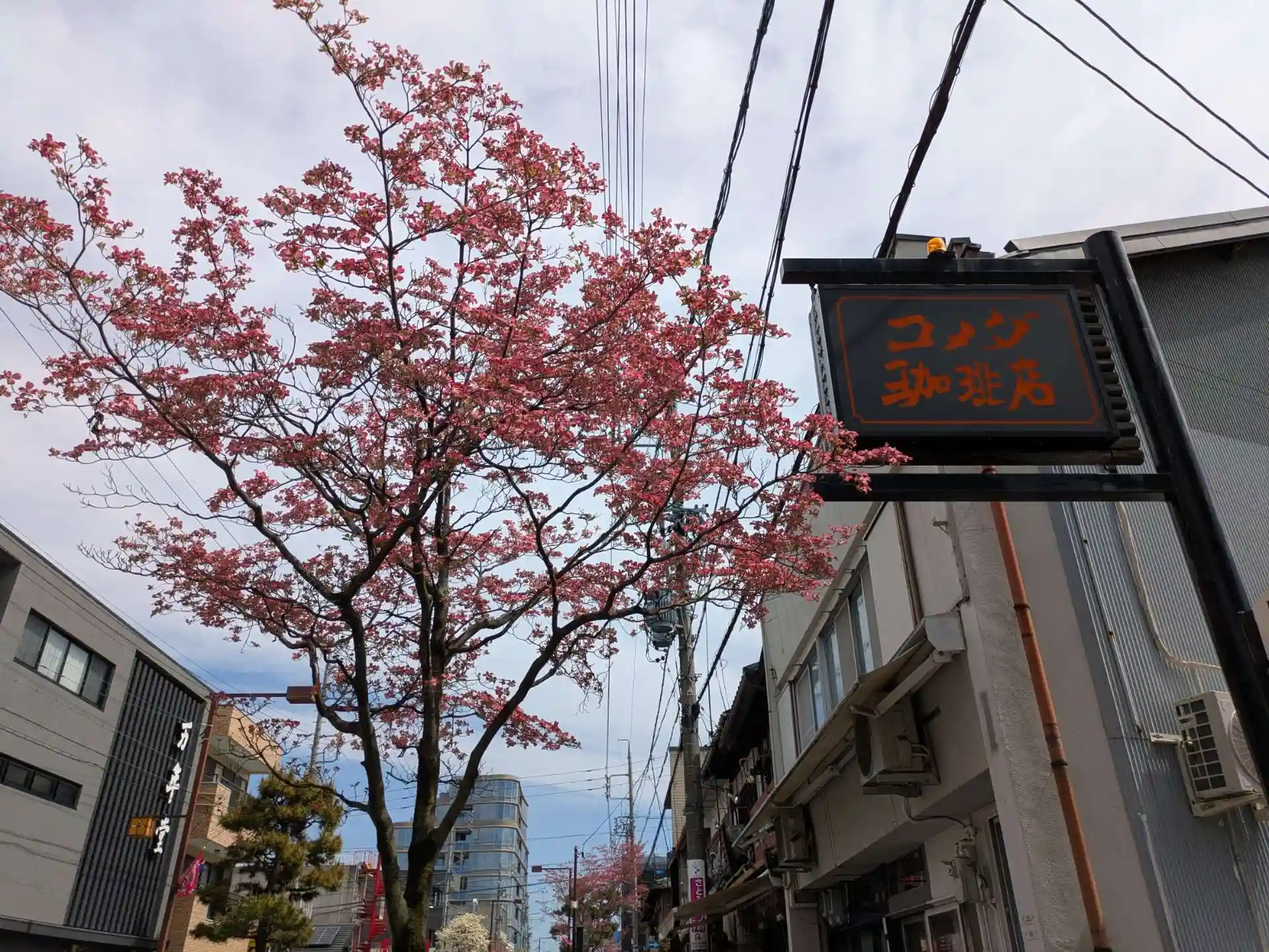 駅から参道の両脇には ハナミズキが・・白 ピンクときれいに咲いています