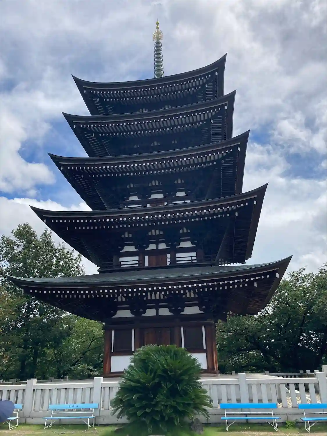 五重塔。周りがひらけていて全容をカメラにおさめやすいです。