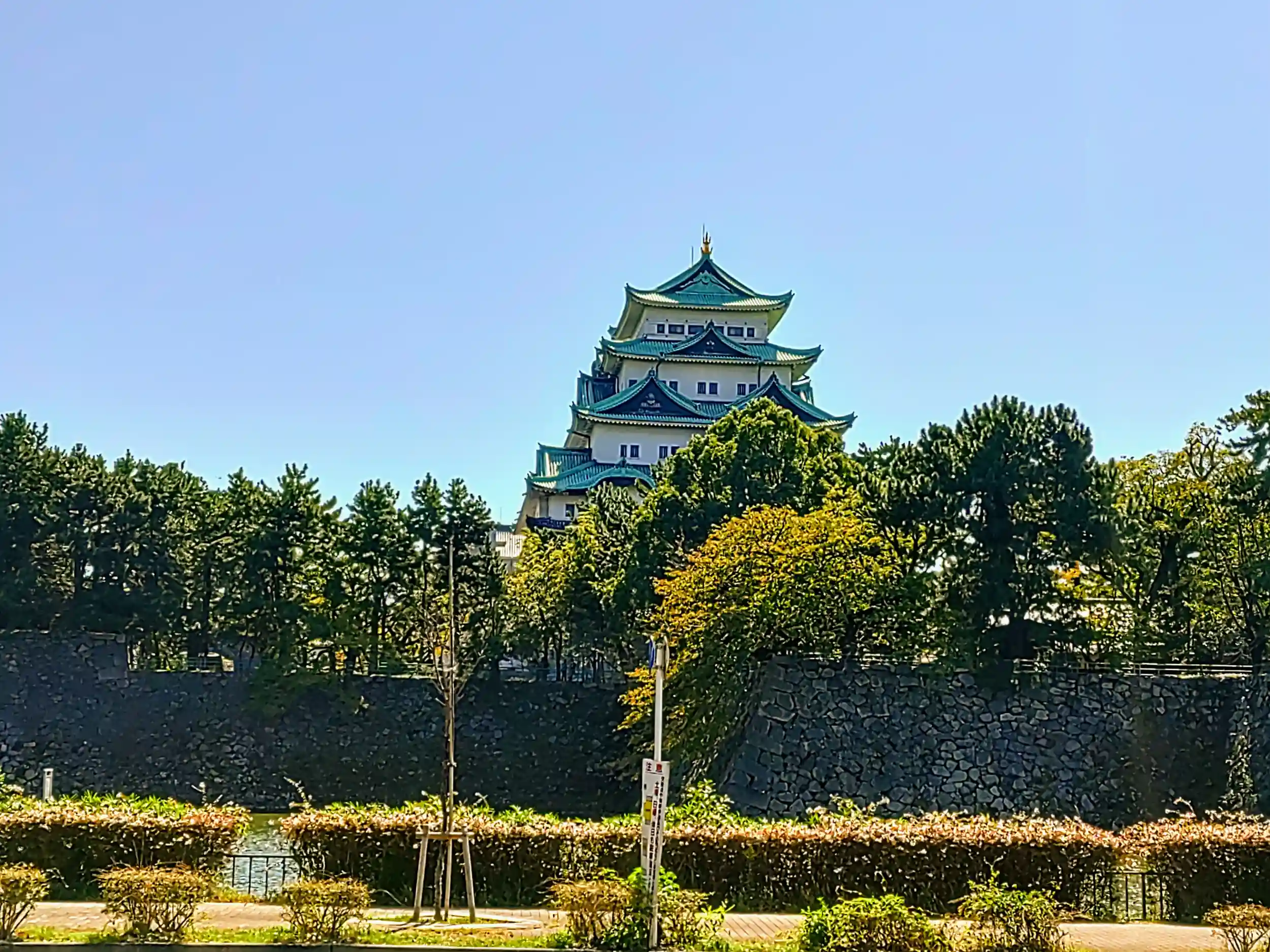 東を望むと名古屋城が。