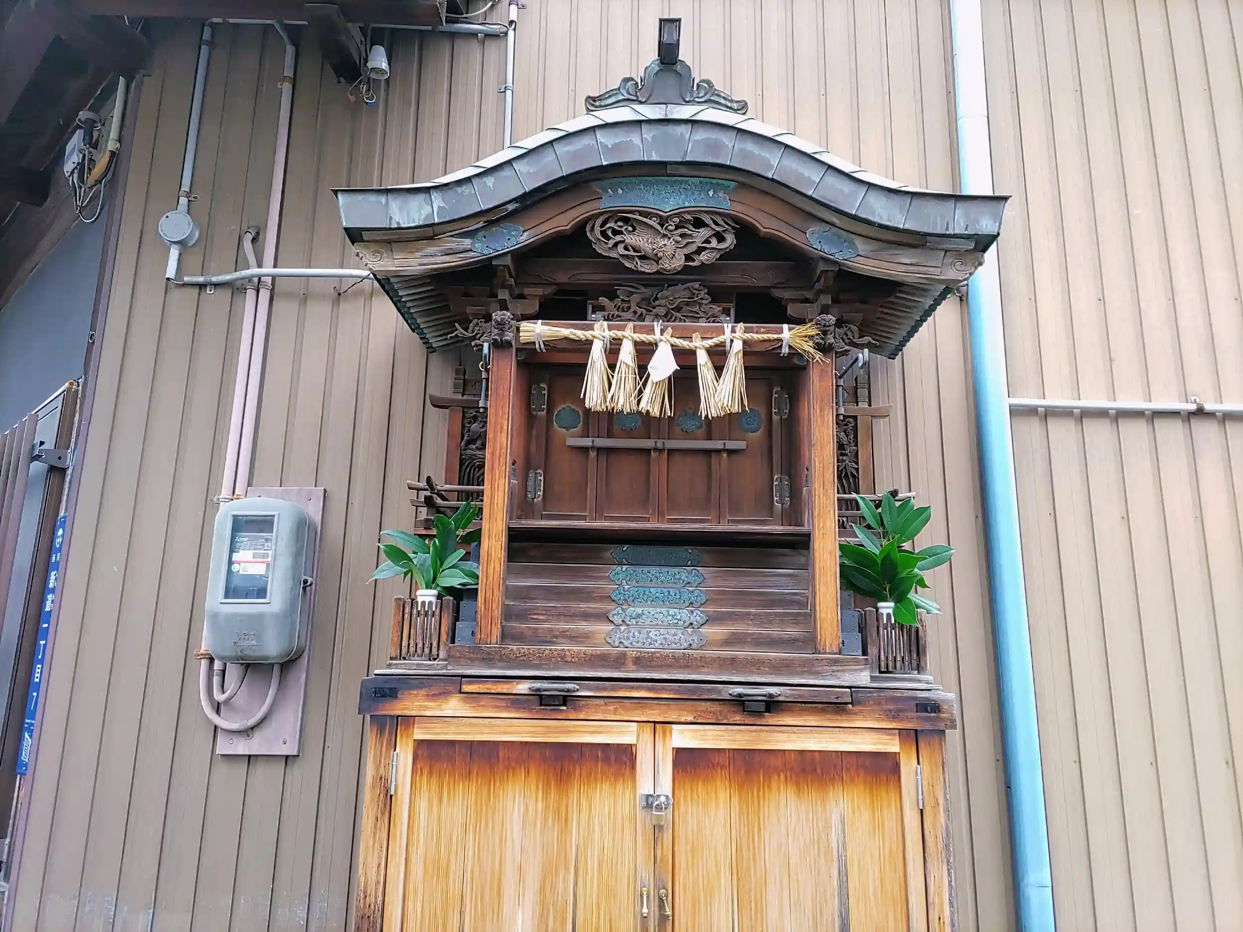 こちらの屋根神さんは、屋根から少し下に降りて来ている。見易い位置から見ると意外にデカい。これも、名古屋の町内遺産である。