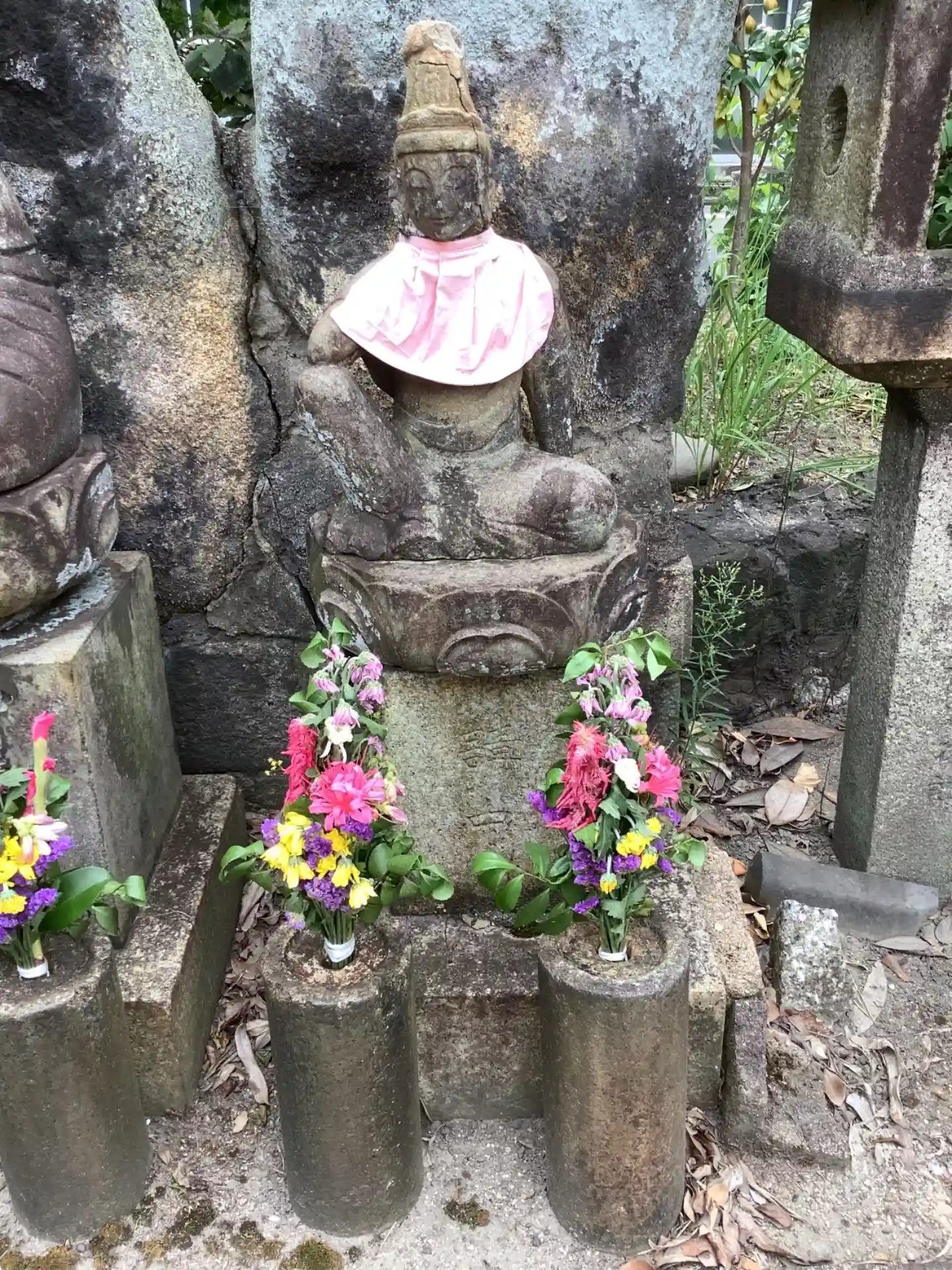 昭和57年(1982)に建立された水子地蔵像。その他の石仏さんたち。