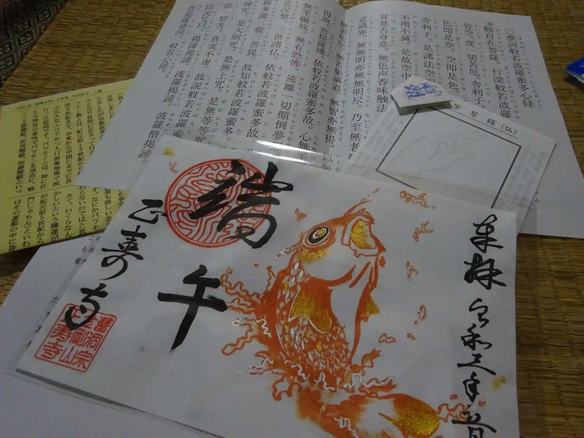 愛知の正壽寺様より 前回 亀が舞い降りた~~~!の時に頂いた<亀さん御朱印>以来の御朱印拝受^^ 今回は<端午> ということで 活力ある鯉のデザインの御朱印 今にも飛び出てきそうな鯉!(朱色なんで鯛みたいですが^^)迫力ある素敵な御朱印です^^