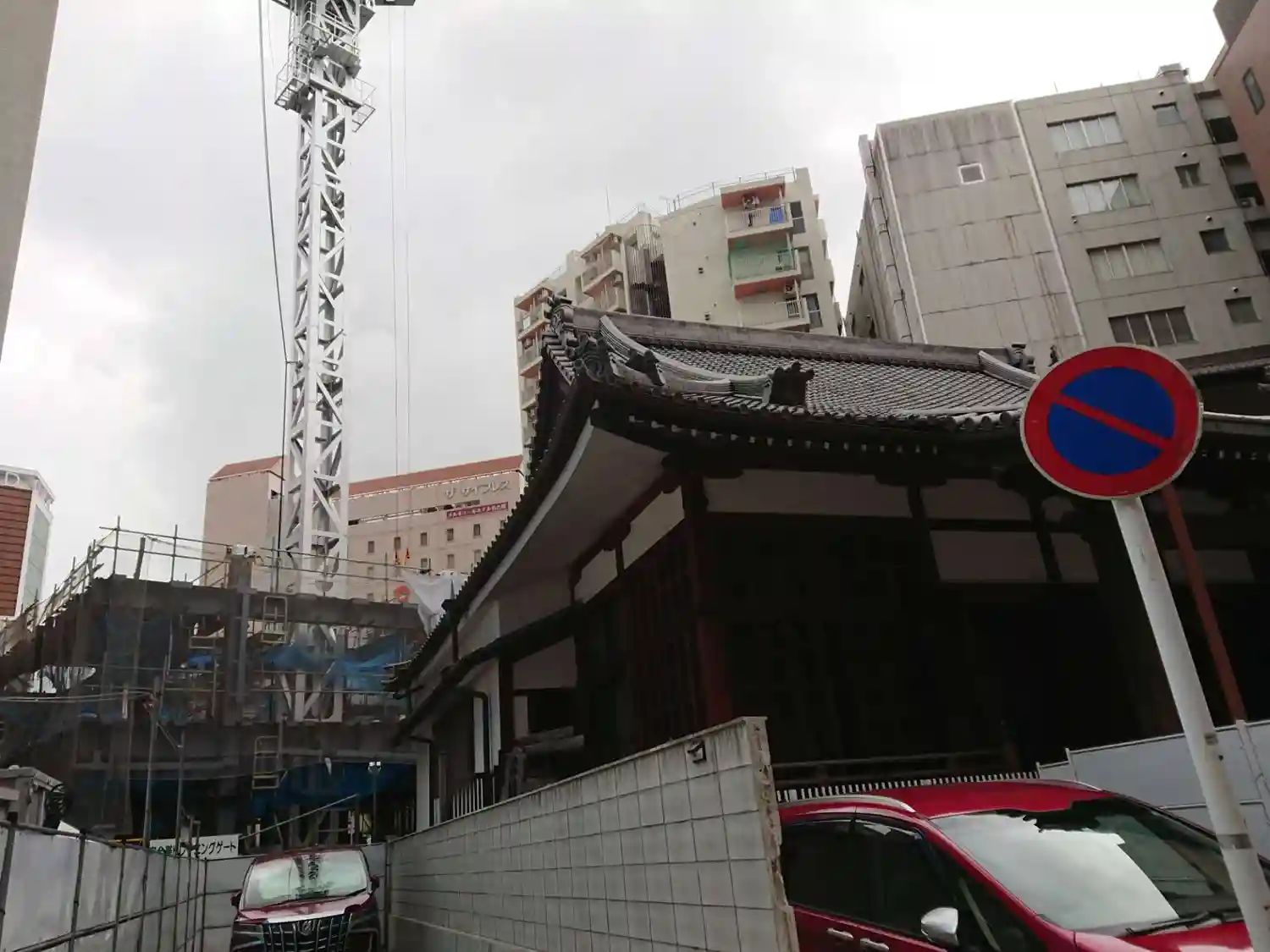 名駅のすぐ前に寺があるんですね。工事中です。