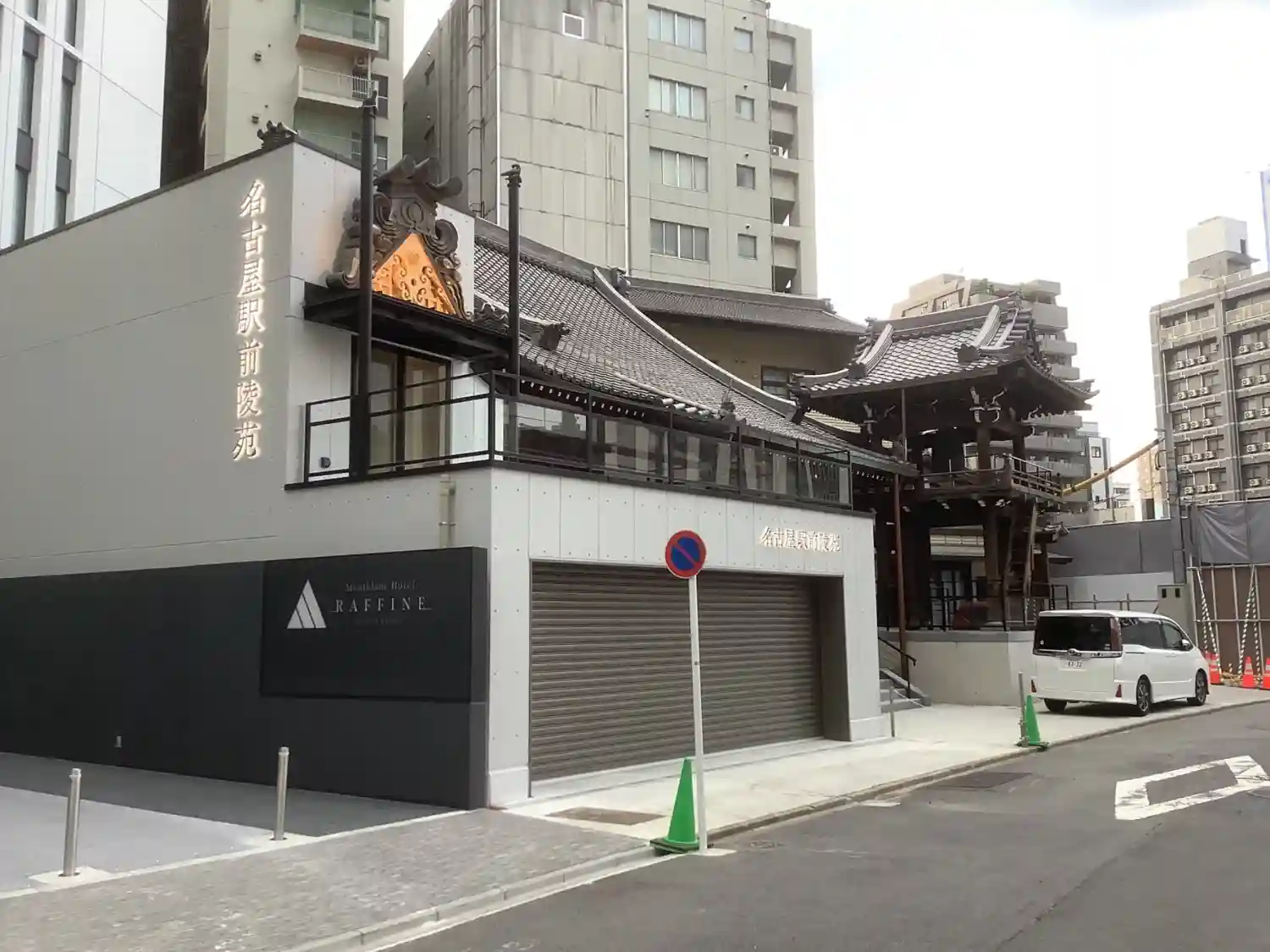 名駅のすぐ前に寺があるんですね。工事中です。
