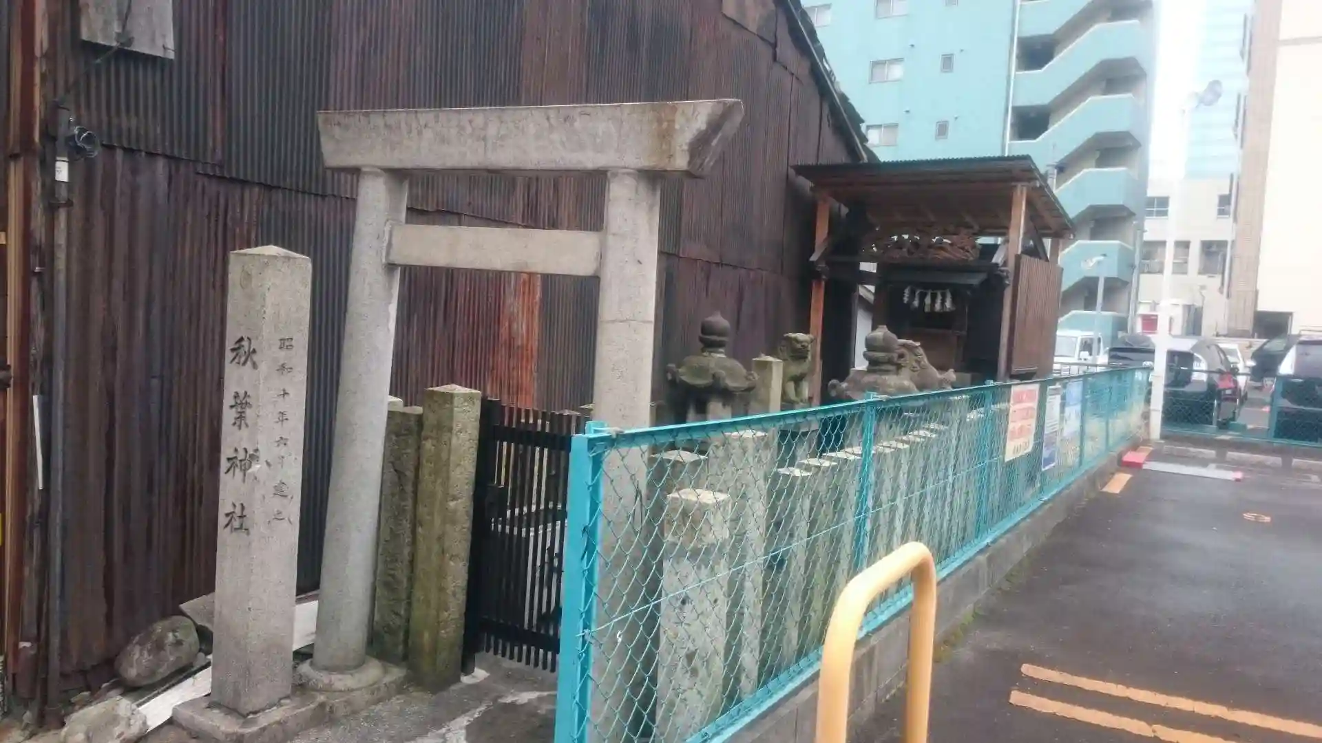 駐車場隣地の細長い神社