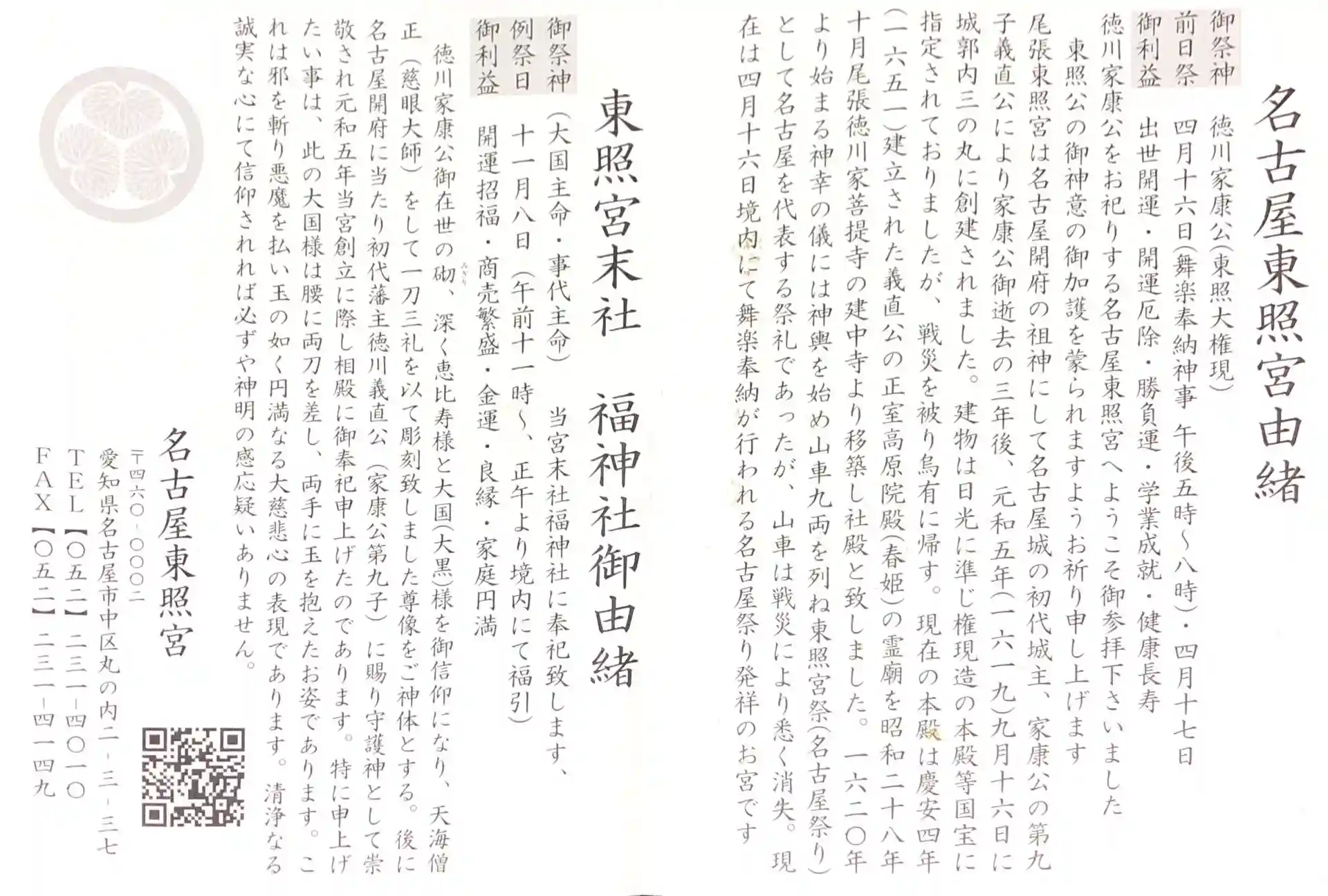 徳川家康公の第九子である尾張藩祖・徳川義直公によって創建。元は名古屋城三の丸にあり、三之丸東照宮とも呼ばれていたそうです。