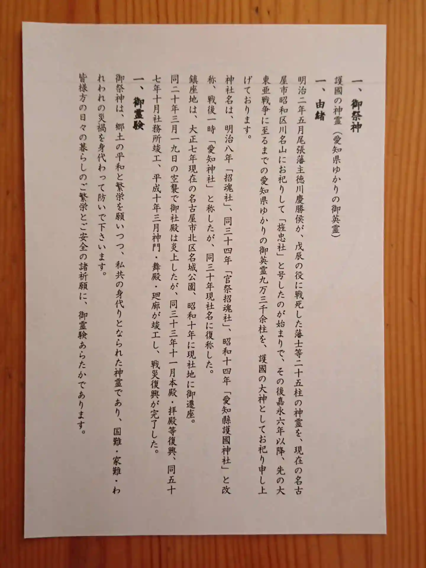 戊辰戦争から大東亜戦争までの愛知県ゆかりの御英霊がお祀りされています。
