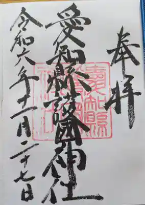 真ん中に愛知縣護國神社と書かれ、社印が押されたシンプルな御朱印です。