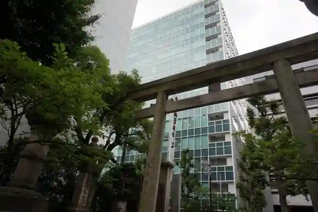 名古屋のビルの谷間にある神社。ご近所の方がお参りしています。近所の企業の奉納も多いようです。
