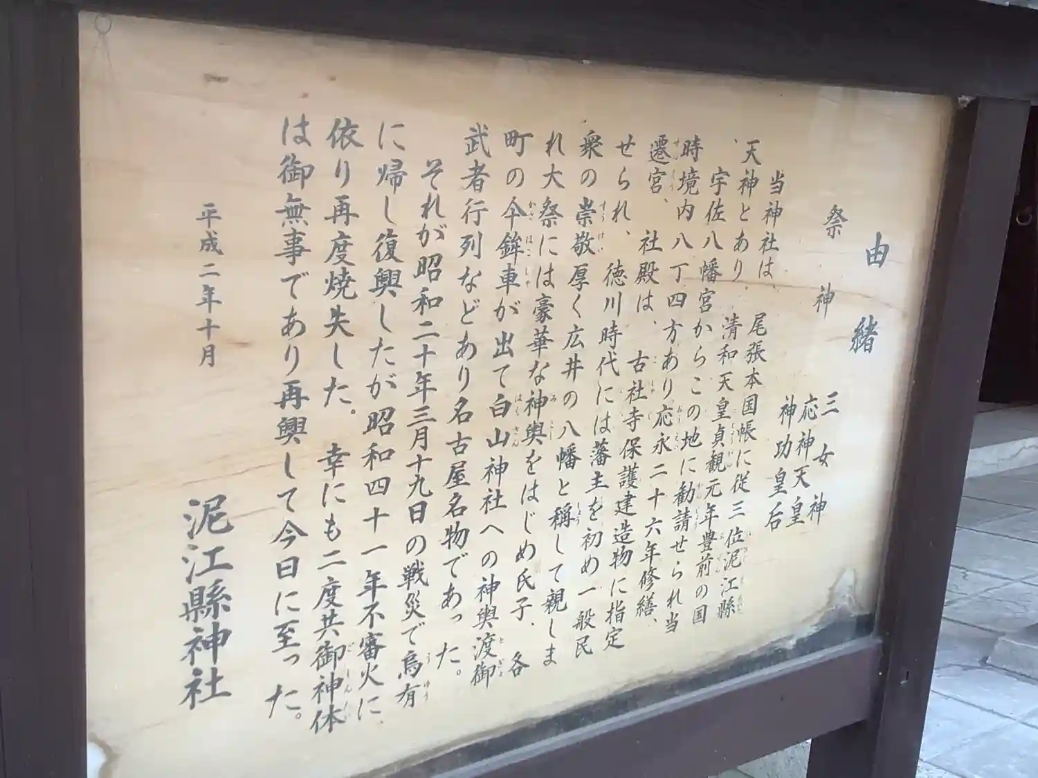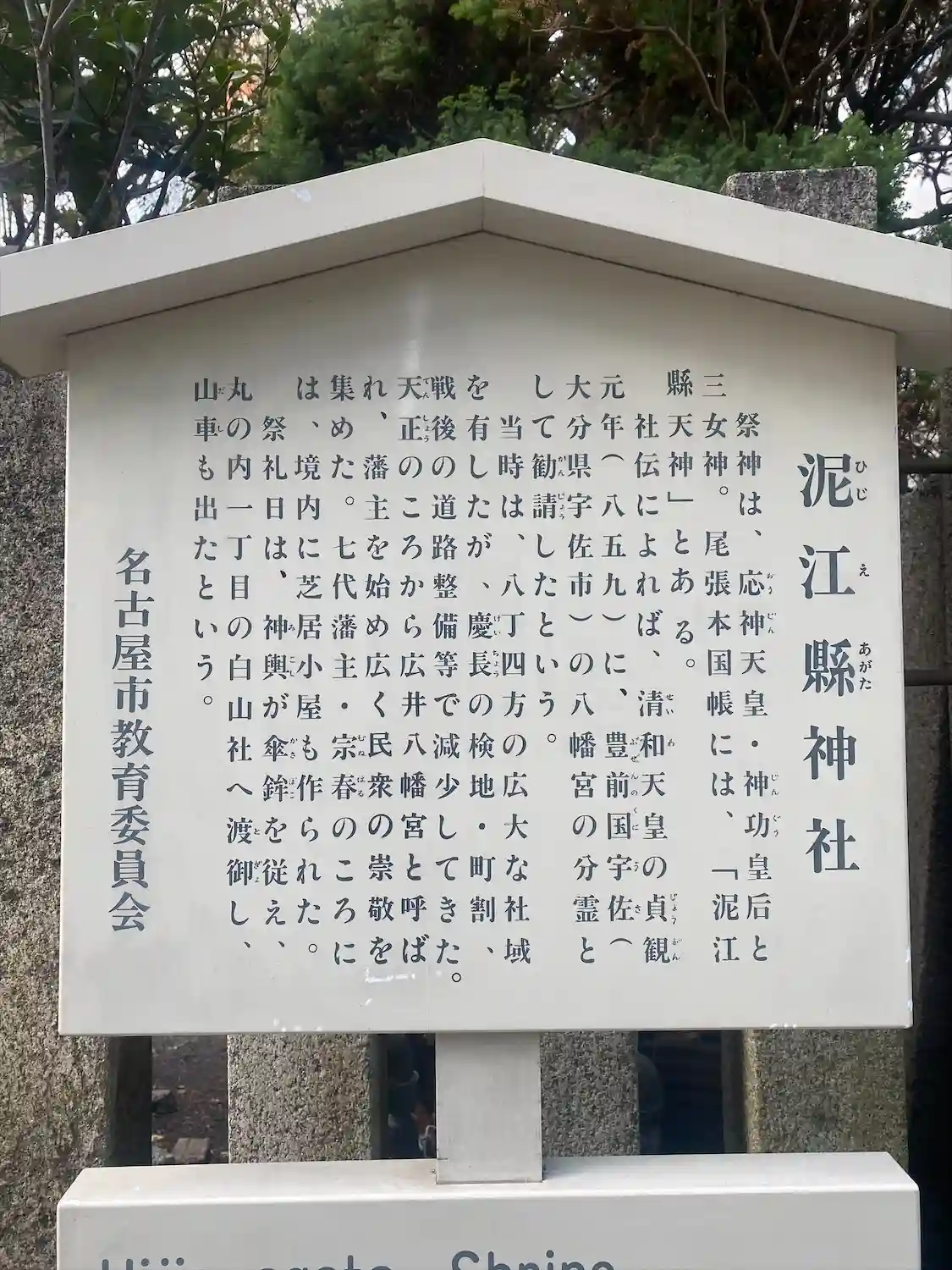名古屋市中区の泥江縣神社です。御祭神は応神天皇、神功皇后、三女神です。