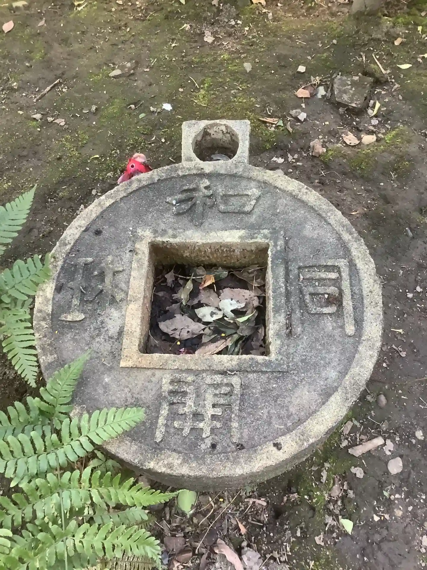 女性男性のシンボルでしょうか?直ぐのところに竹筒の賽銭入れも