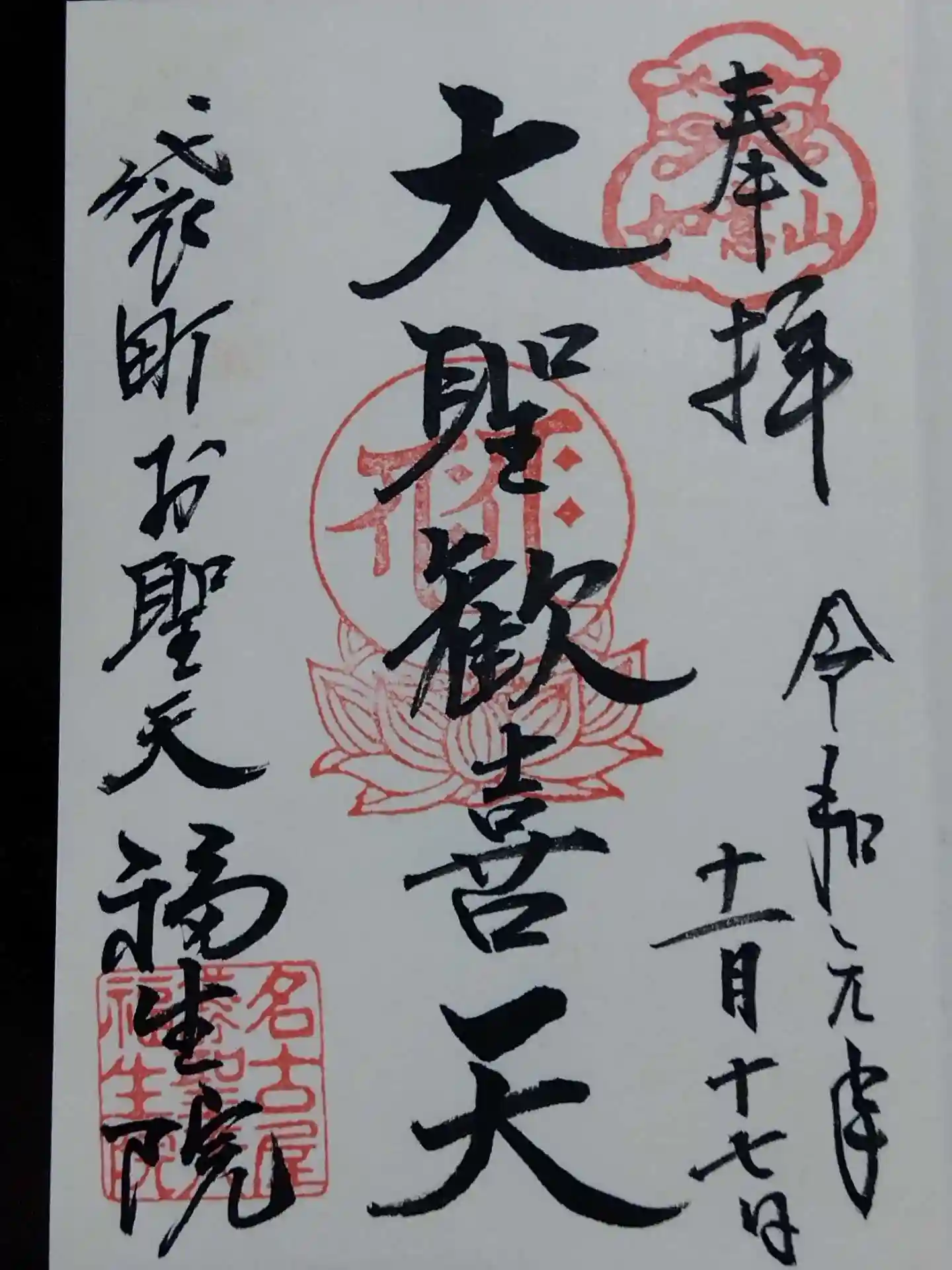 御本尊の歓喜天、毘沙門天、不動明王の御朱印をいただきました🖌️