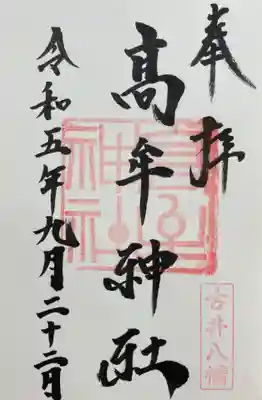 髙牟神社の御朱印・御朱印帳