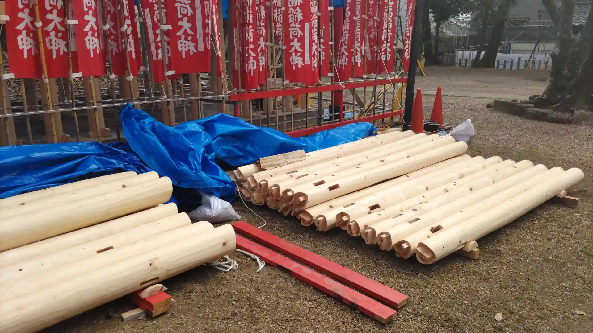 2024/2/17は白木の鳥居を立てる工事中でした。