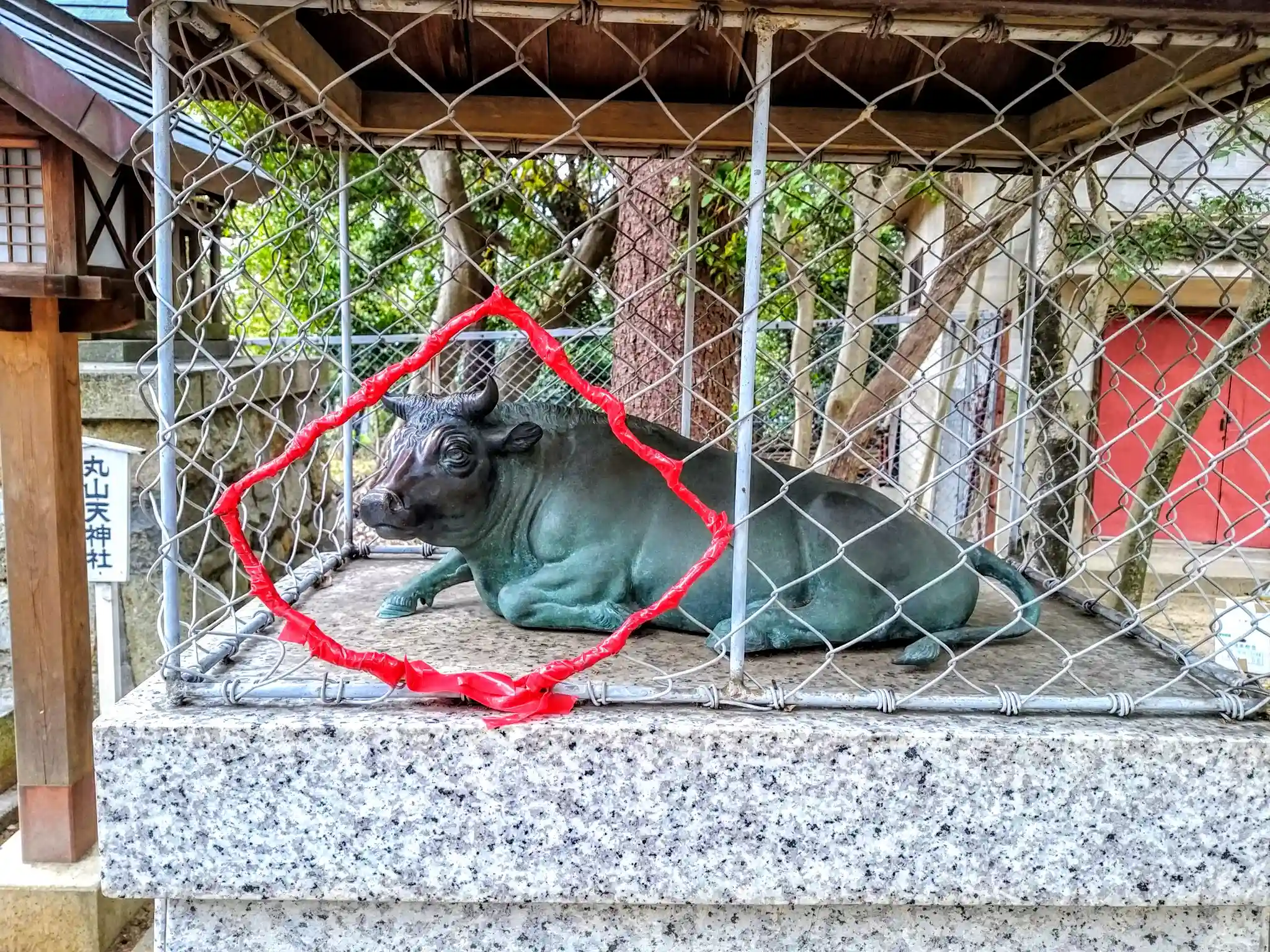 檻に入れられた撫で牛さん