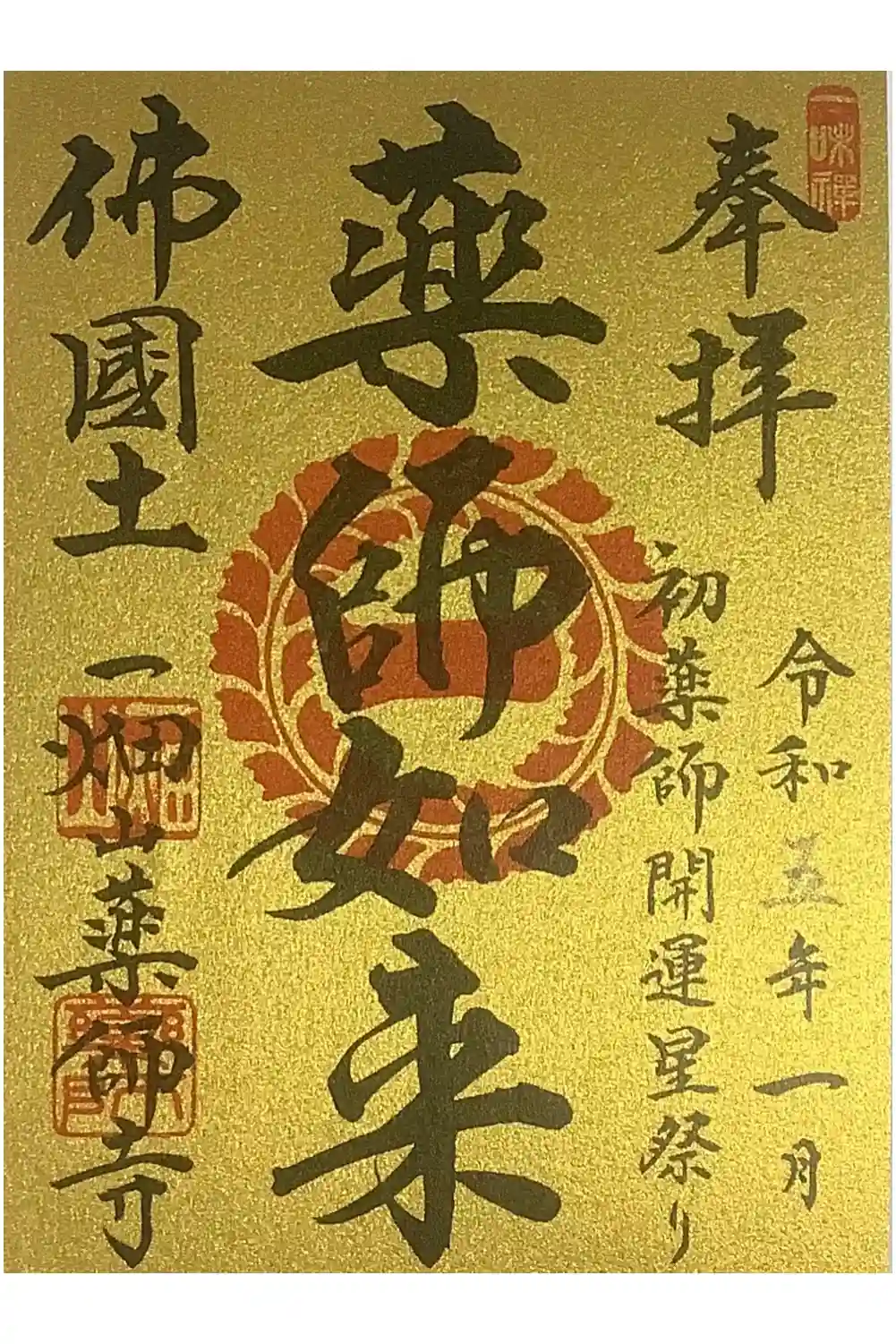 初薬師・開運星祭り 薬師如来の書置き御朱印です。
