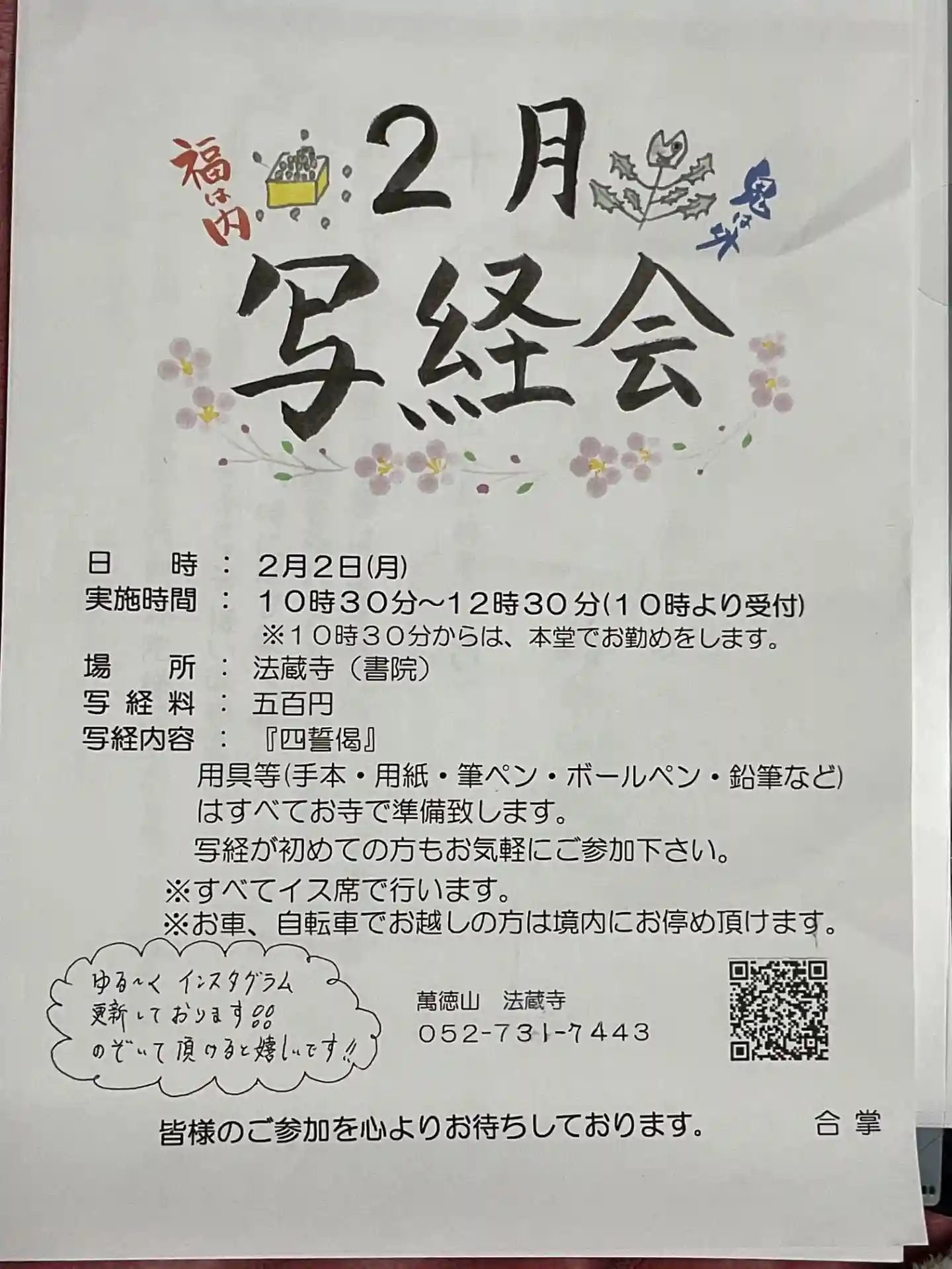 先月末のインスタからの報告で、今日の写経会のことを知り得ました。