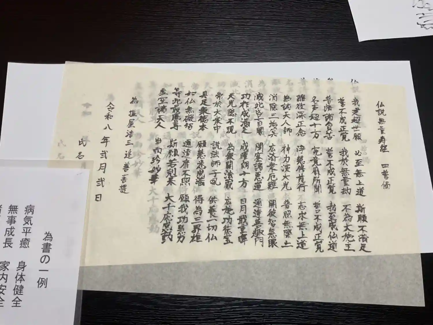 今日のお写経は、『誦経(四誓偈)でした、