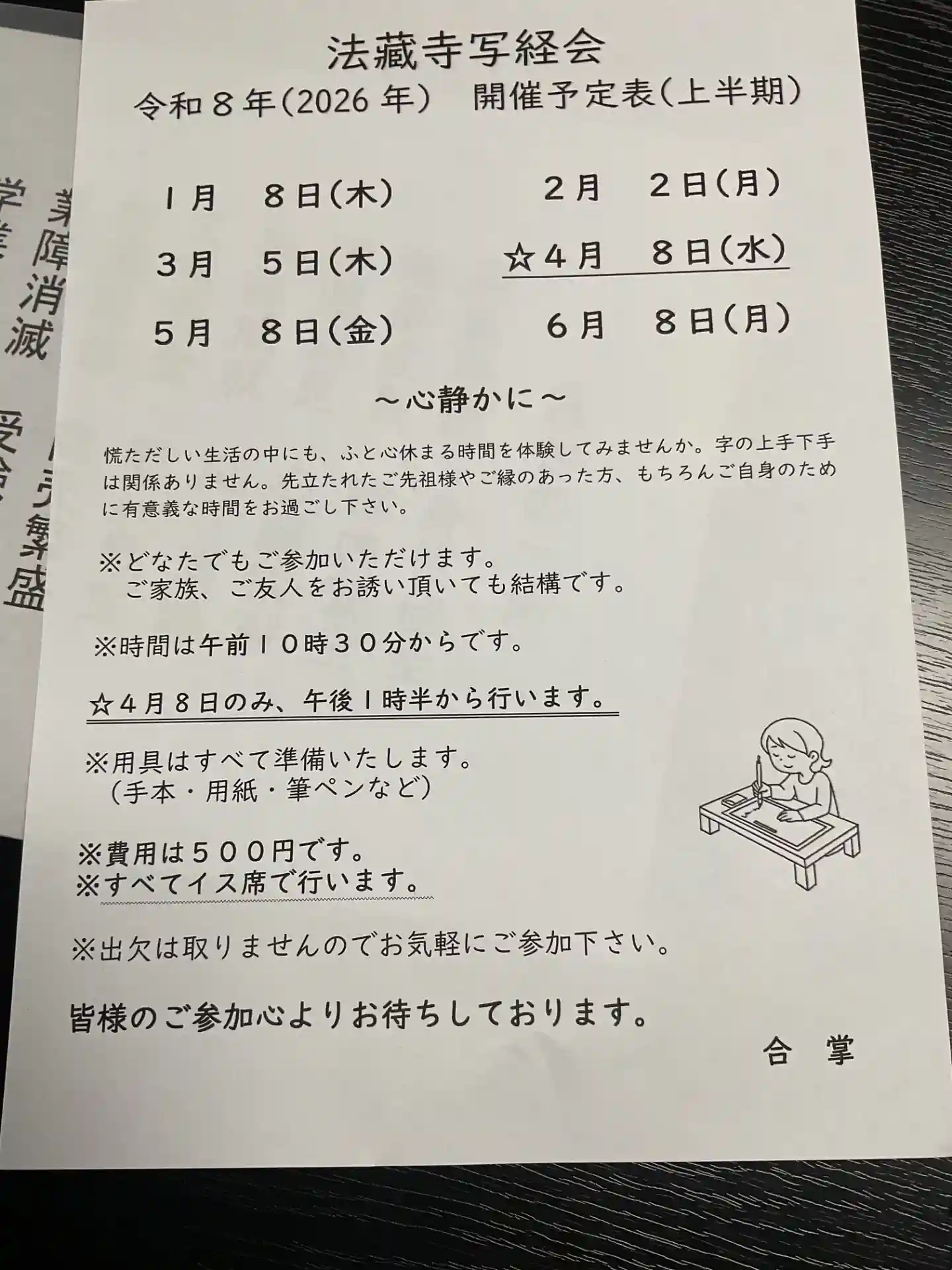 先月末のインスタからの報告で、今日の写経会のことを知り得ました。