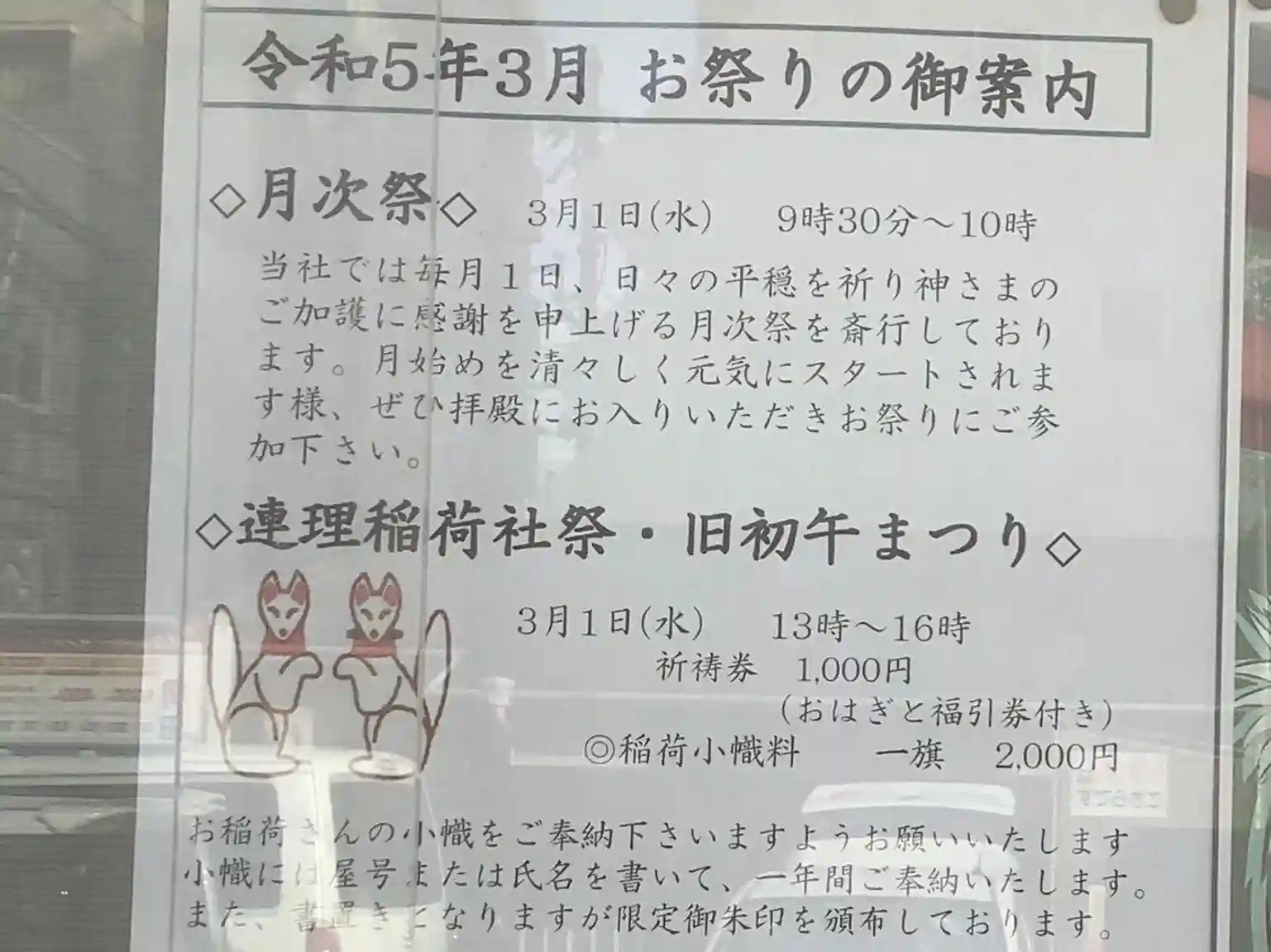 書置き御朱印、初午祭です。狐さん🦊🦊