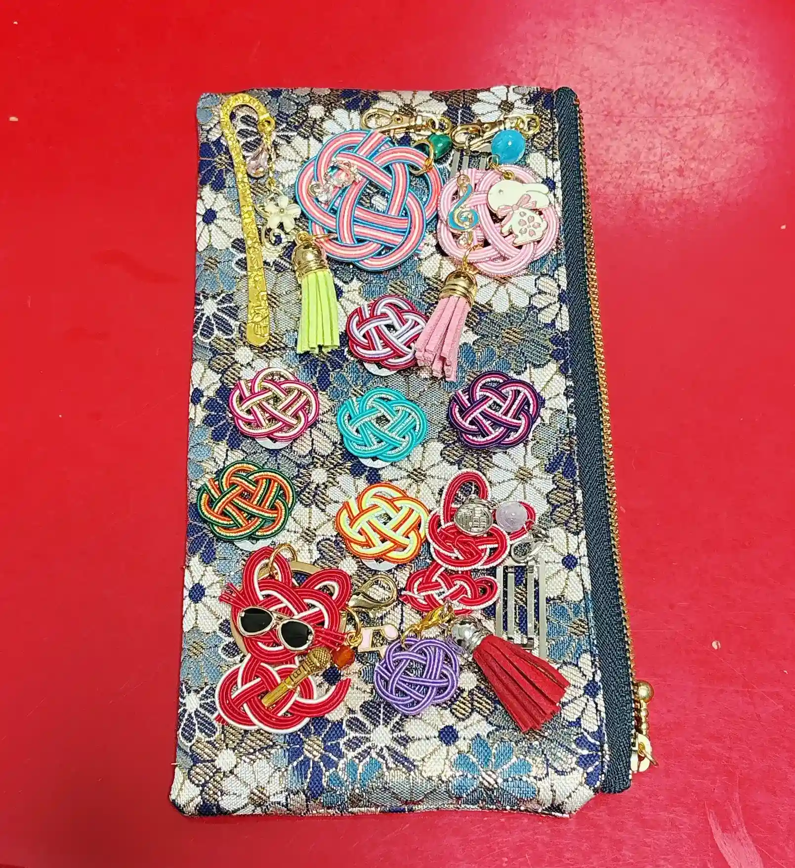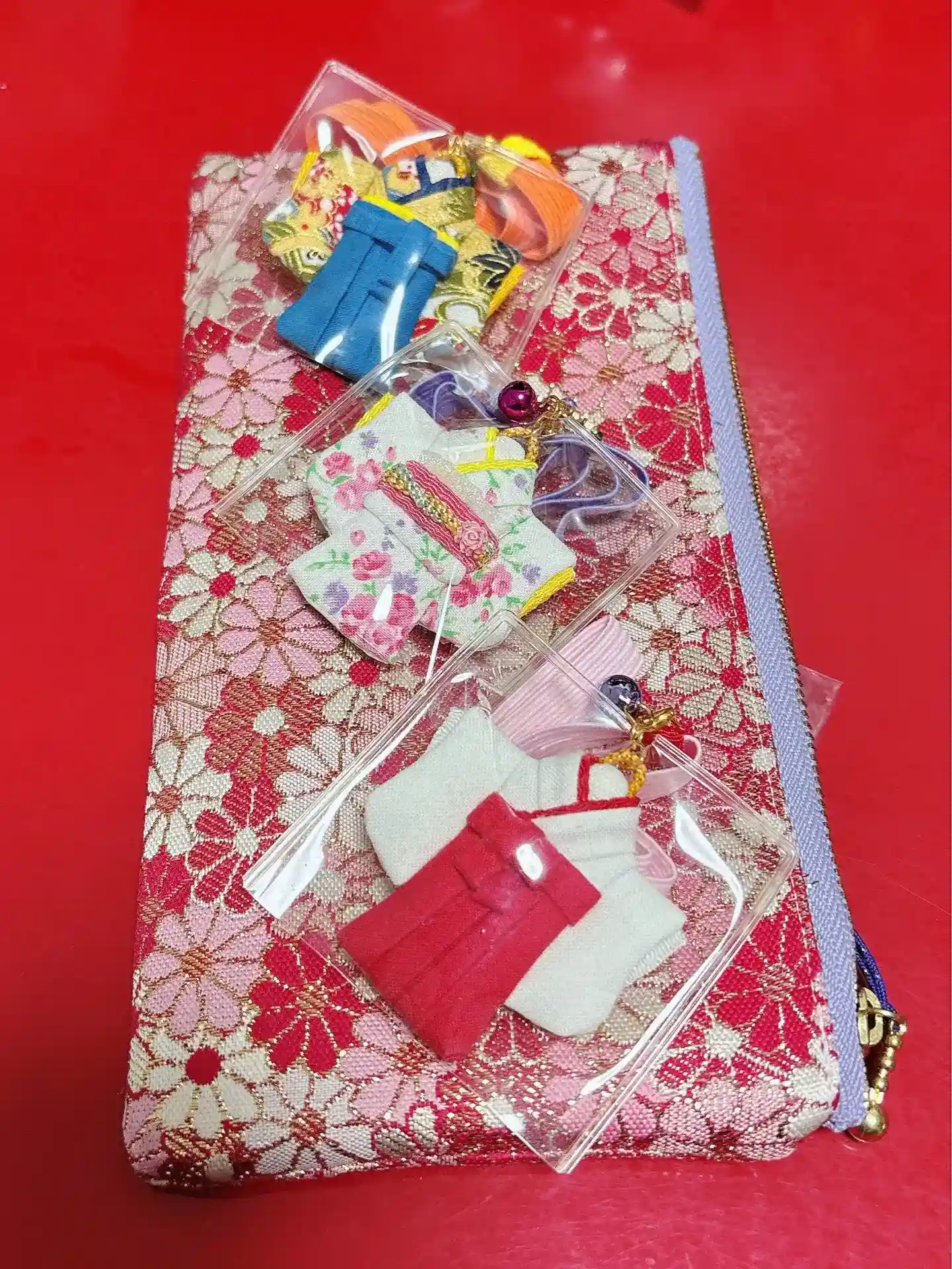 11枚目はまた別のハンドメイド作家さんに作っていただいた御朱印帳バンド❤️これを入れる専用のポーチ、12枚目は水引チャームや、チビ梅クリップを入れるポーチ…。持ち歩く荷物も沢山になっちゃいました♡