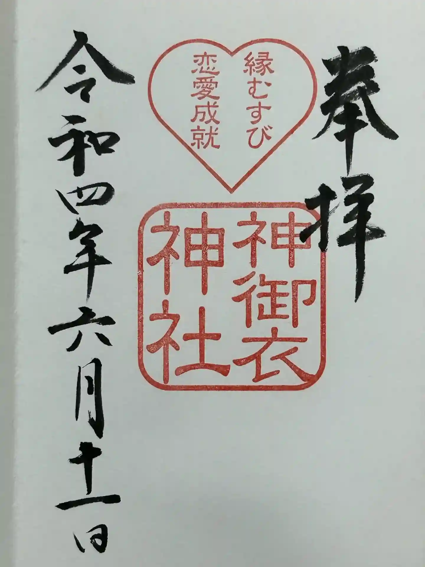 3種の御朱印があり、通常の若宮八幡社、縁結びの神御衣神社、夫婦円満のご利益があるという連理稲荷神社…