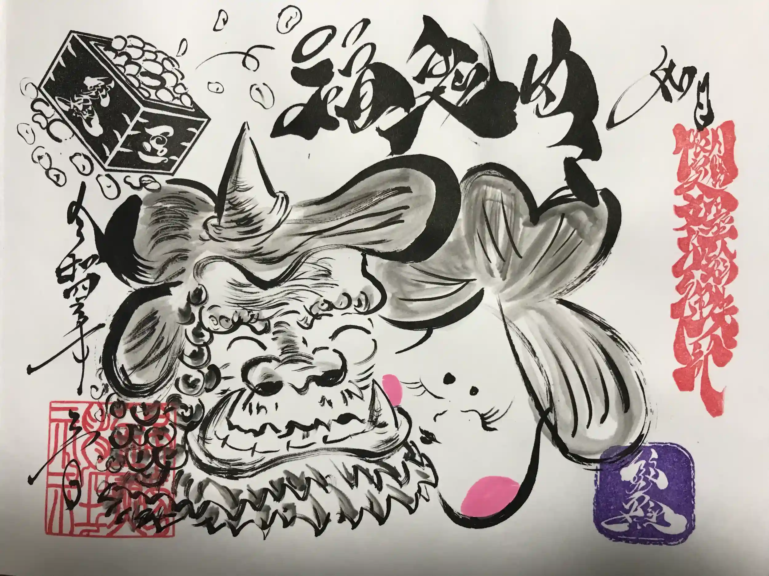 左:節分限定直書き御朱印『福魔目(ふくまめ)』